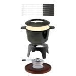 Complete 12-Piece Set: Includes a 1.6 quarts / 1.6 Liter pot with handles, 6 colour-tipped forks, splatter ring, rechaud, paste / gel fuel burner, and a grooved wooden base for stable serving. Perfect for hosting memorable fondue nights with friends and family.