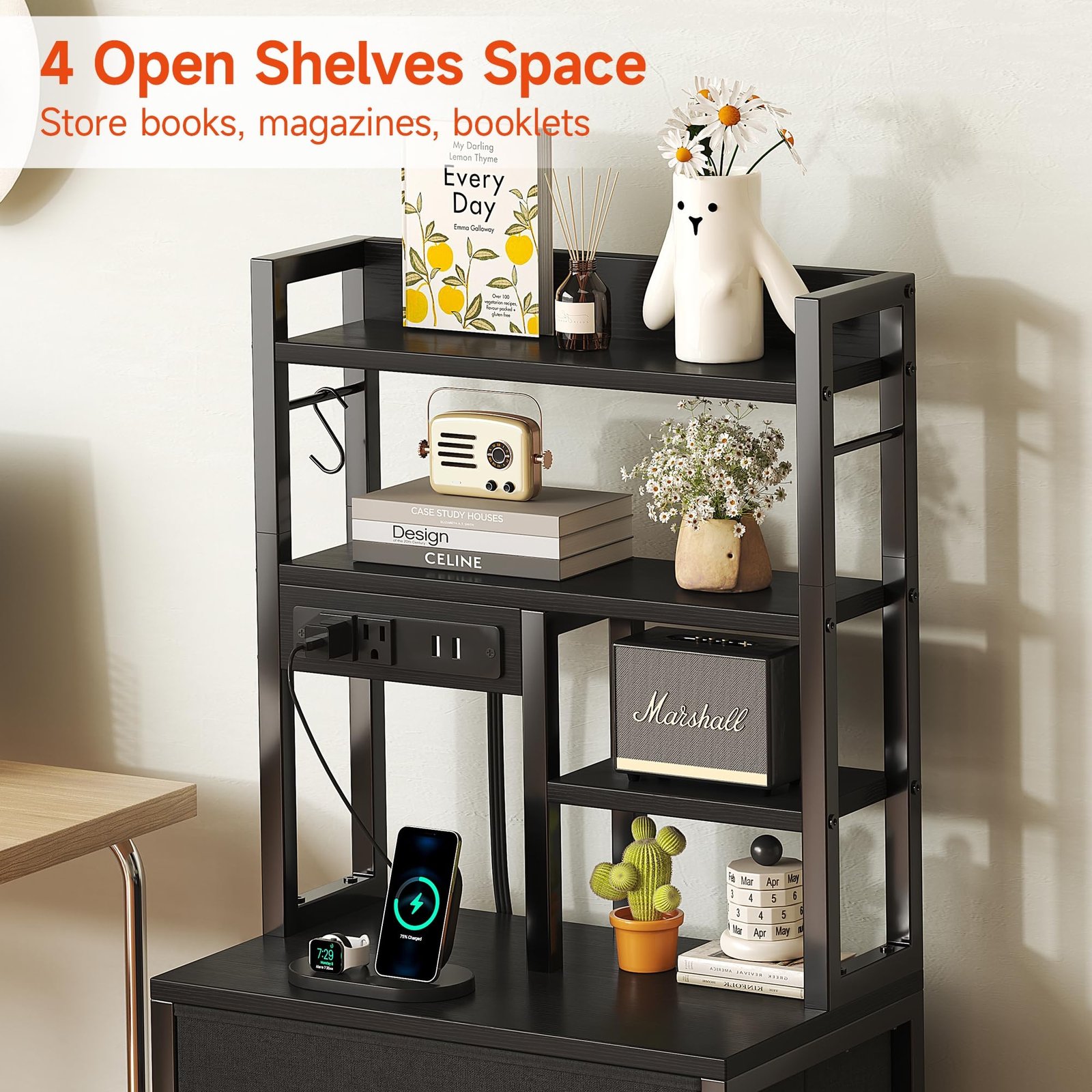 Flexible Design for Modern Living: Reimagine your bedside with our customizable tall nightstand. Equipped with adjustable shelves, outlets, and S-hooks, it’s designed for convenience and style. The sleek high-table design maximizes storage while fitting perfectly into modern spaces.