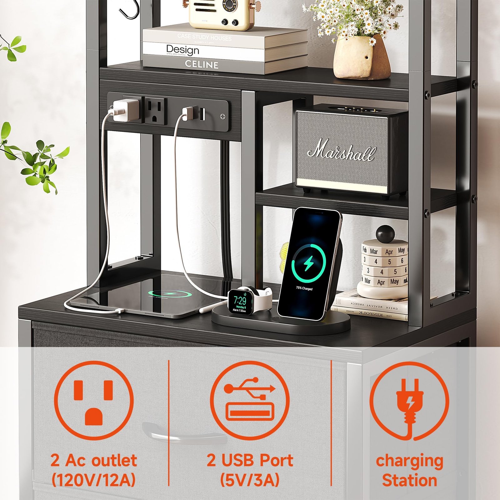 Built-In Charging Station: Charge your devices with 2 AC outlets and 2 USB ports, plus a 6.5 ft cord for flexibility. Keep your bedside clutter-free while powering up your tech.
