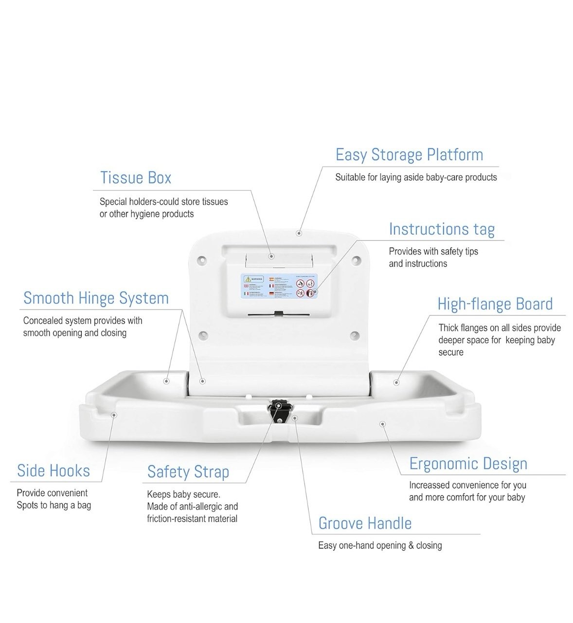- Wall-Mounted Baby Changing Station. The TCBunny Wall-Mounted Baby Changing Station is designed for use with infants and toddlers (up to 3.5 years) in commercial restrooms.