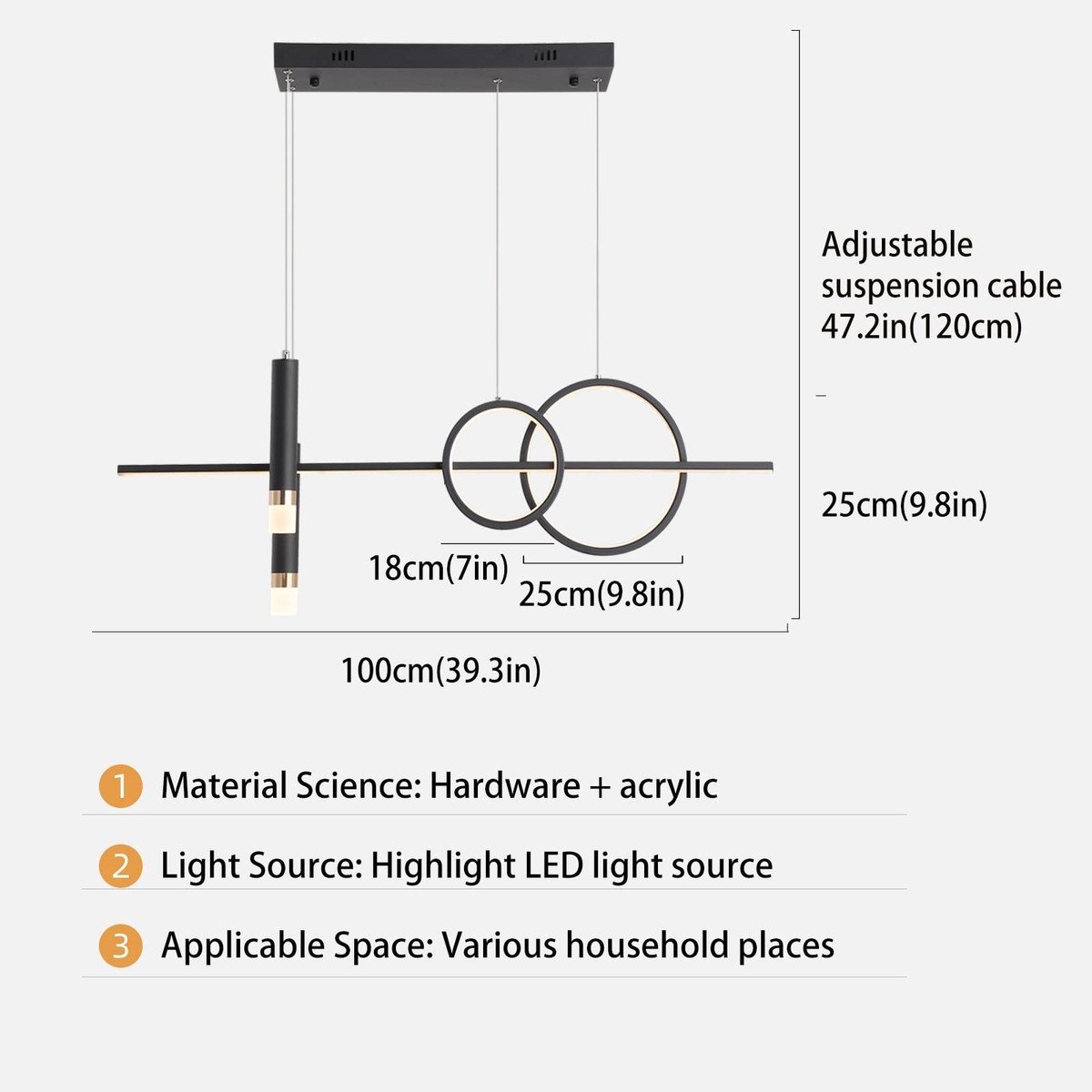 Adjustable Height: Lamp fixture: 39.3*4.7in (100*12cm), Ceiling plate: 20.4*4.7*1.57in (52*12*4cm), Hanging wire length: 47.2in(120cm). The suspension cable of linear pendant light fixture can be adjusted according to your need and preference.