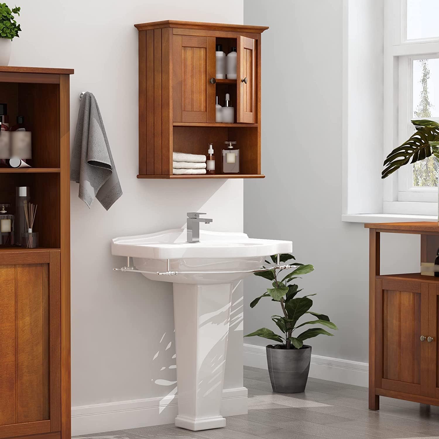 Treocho Wood Wall Cabinet, Bathroom Cabinet Storage