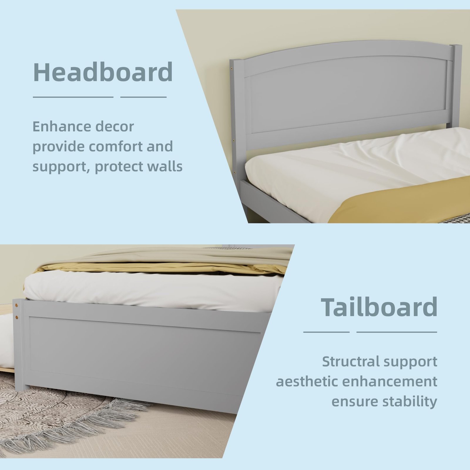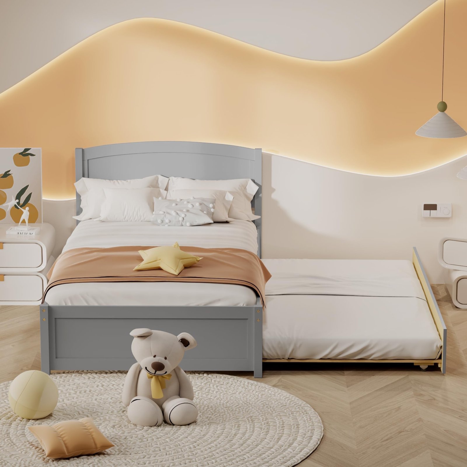 Modern Home Decor Style:This twin bed frame with trundle has simple yet detailed design, which fits perfectly into a modern home decor. We have three colors for you to choose from, which are gray, natural and white. You can choose according to the overall color of your home.