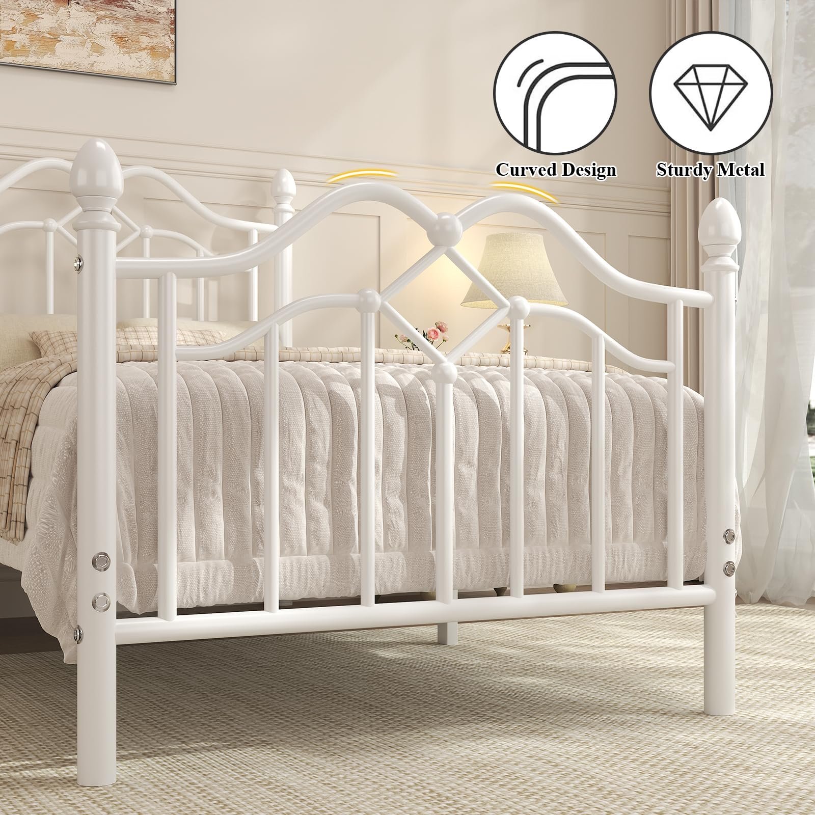 【Strong and Stable】: The metal twin bed frames for kids is made of heavy-duty metal and has an optimized structure to ensure stable and durable support for the mattress. It has a weight capacity of up to 800 pounds, allowing your family to sleep more comfortably and safely. The powder-coated surface features medium rust and scratch resistance for long term use.