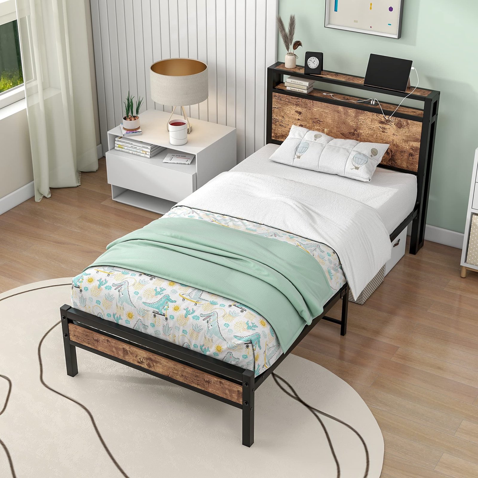 Twin BOFENG Metal Platform Bed Frame Headboard with Storage