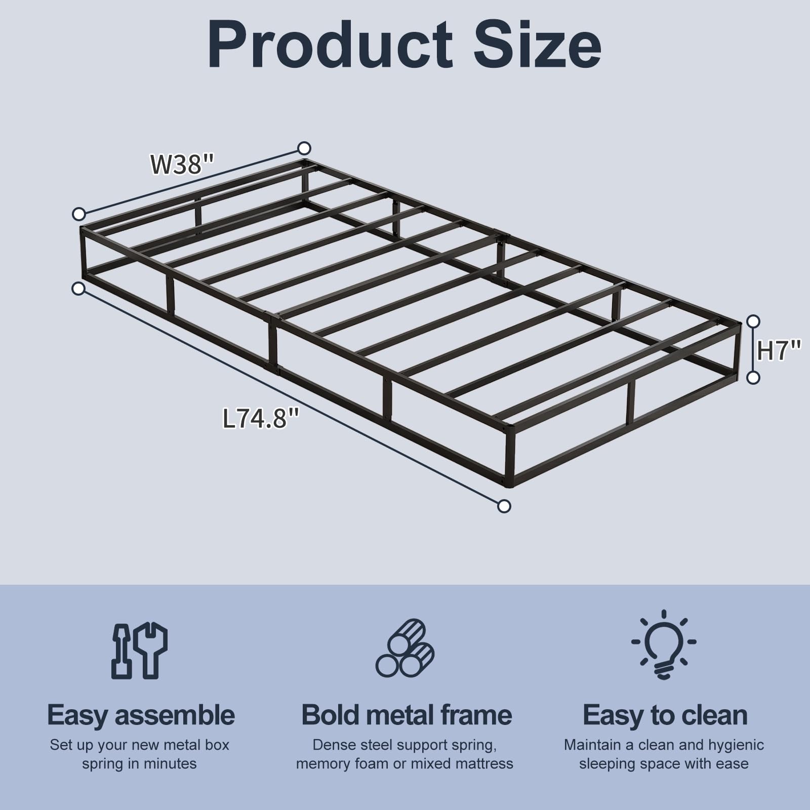 Sleek & Low-Profile Design:Upgrade your sleep setup with our 7-inch full-size box spring, perfect for those who prefer a lower bed height or have a taller mattress. Designed to work seamlessly with all mattress types including memory foam, innerspring, and latex.