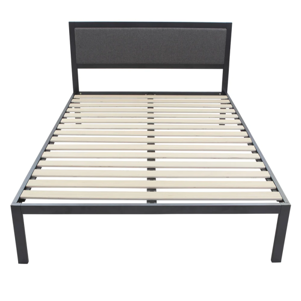ViscoLogic Metal Bed Frame is an attractive-looking bed features a prominent right-angled headboard and four-sided framing with wooden slats running across the center. Its post-style legs provide stability and structure, plus create useful space under the bed for slippers or storage.