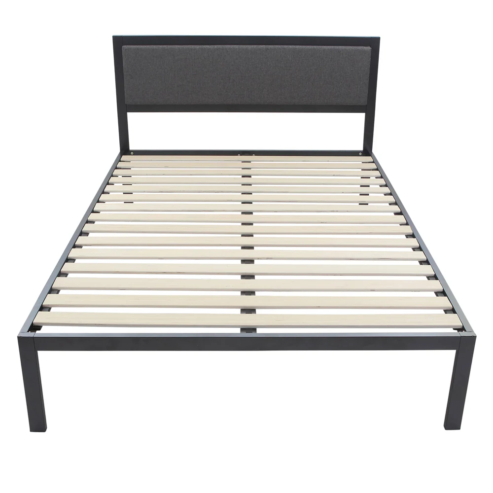 Twin Platform Metal Bed Frame with Upholstered Headboard