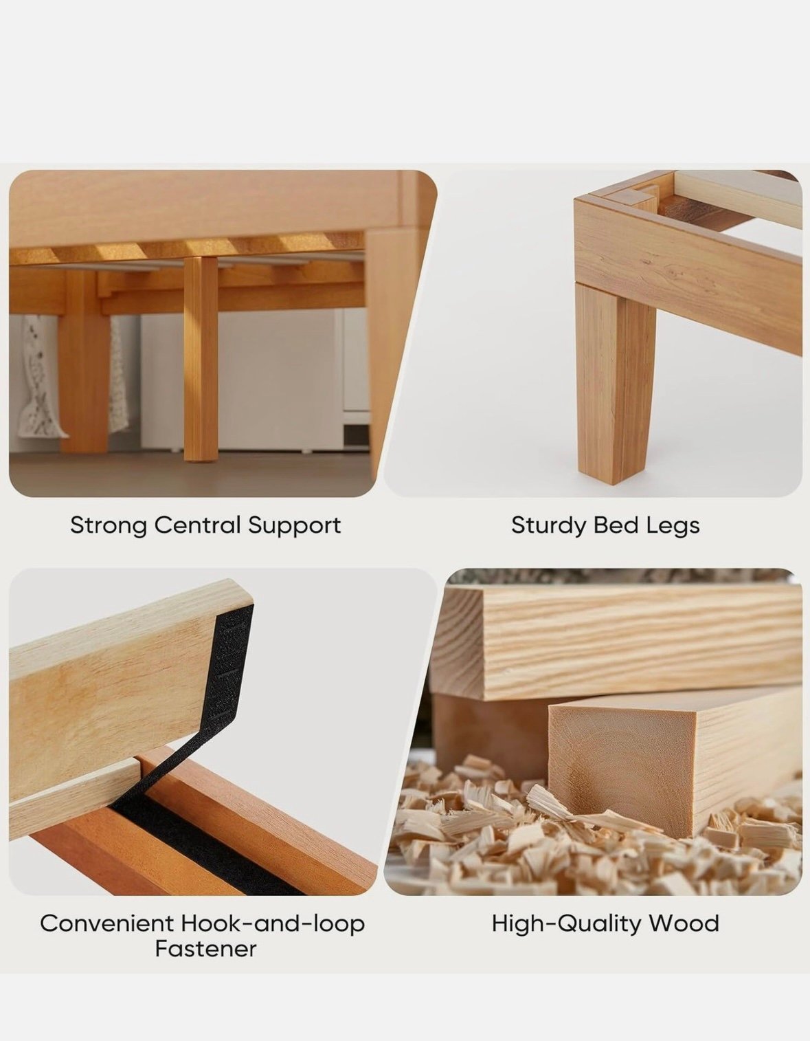 Strong Support: The JHK wooden bed frame with wood slats is crafted from durable solid wood, designed for long-lasting use. It provides more support than most other competitors, with a weight capacity of up to 700 lbs