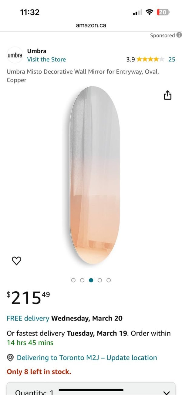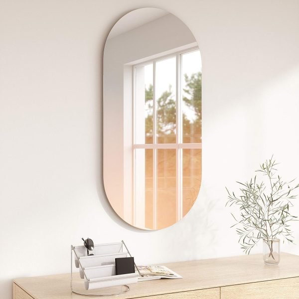 Misto Mirror features a soft gradient, adding a touch of color to your space. Misto’s slim oval shape incorporates a decorative touch to your walls. With rounded curves, Misto instantly softens any space and doubles as an art piece on your wall.
