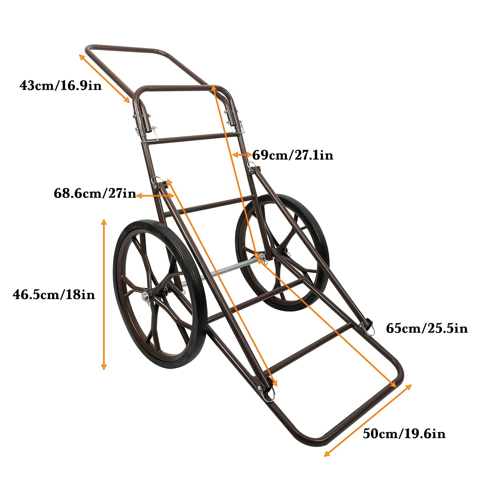 【Ample Practical Space】 Hunting cart with overall dimensions of 61×19.6 inches, this provides ample space for carrying game and hunting equipment. The ergonomic design of the handle facilitates easy transport, reducing fatigue during pushing. Moreover, this deer vehicle is particularly suitable for the hunting season, aiding in transporting large trophies and enhancing your hunting experience.