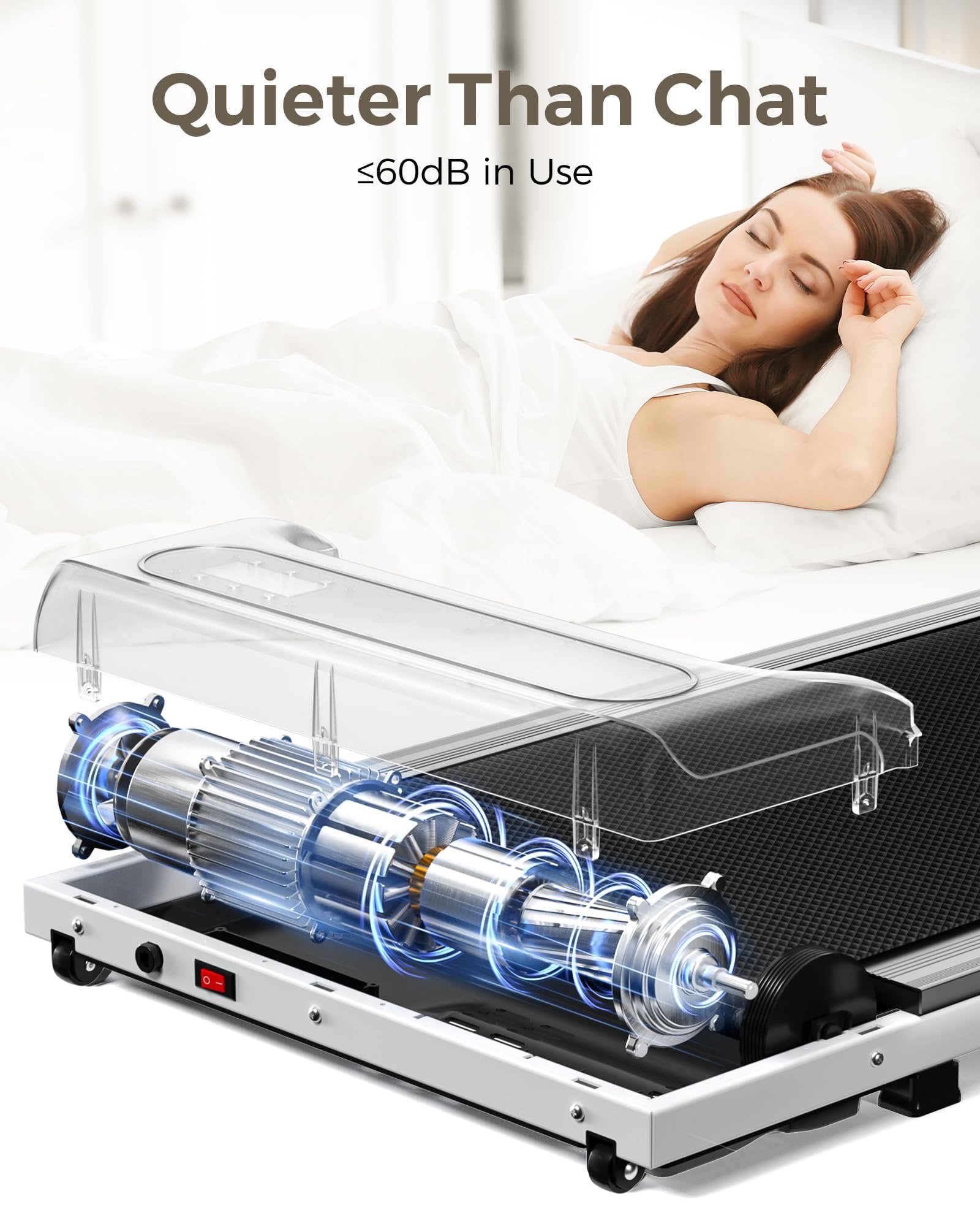 2.5HP Powerful Motor: The treadmill is equipped with a powerful 2.5HP motor and offers a large weight capacity of up to 265 lbs. And it is quiet while using. Using noise below 60 DB, so you can exercise while not disturbing others.