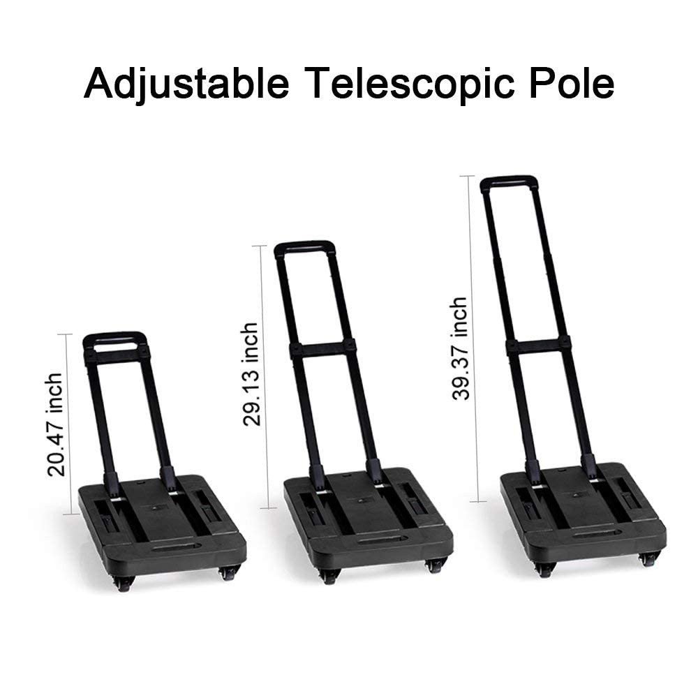 SPECIFICATIONS: Max. Loading capacity: 200kg/440lbs. Three position telescoping handle: 16.54?, 27.17?, 35.83?. Folding size: 47*30*9cm/18.50in*11.81in*3.54in (L x W x H). Item weight: 3.3kg/7.28lbs.Show more