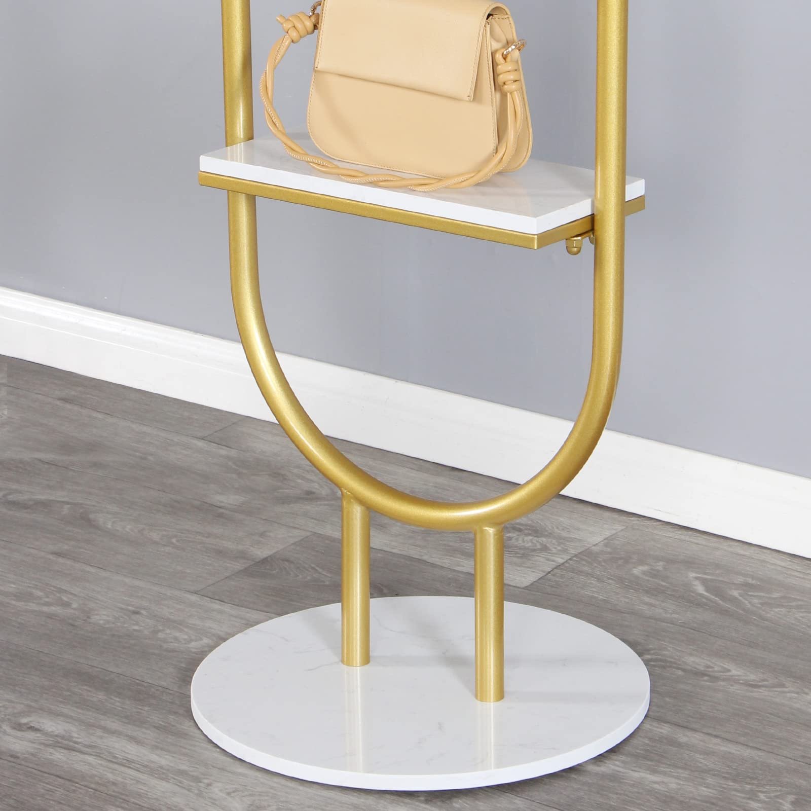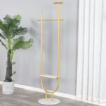 This gold clothing rack have a round marble base make it stable.