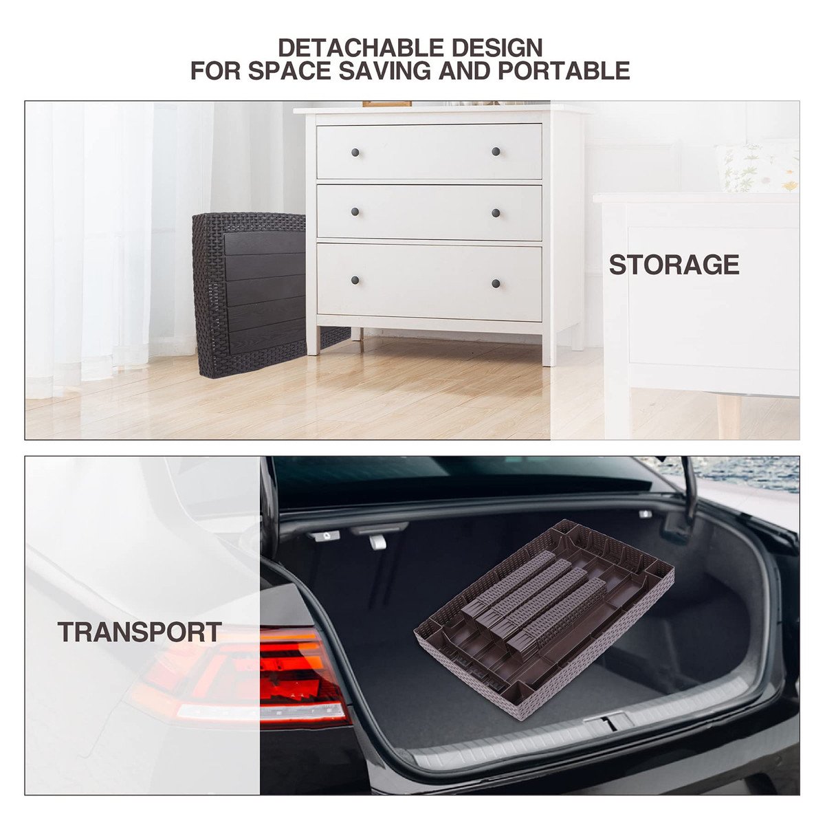 ?Premium Material?The detachable patio coffee table is well constructed of premium plastic material, which is durable, water-resistant, long-lasting and easy to clean. You can wipe dirty spots or spills with a damp cloth.