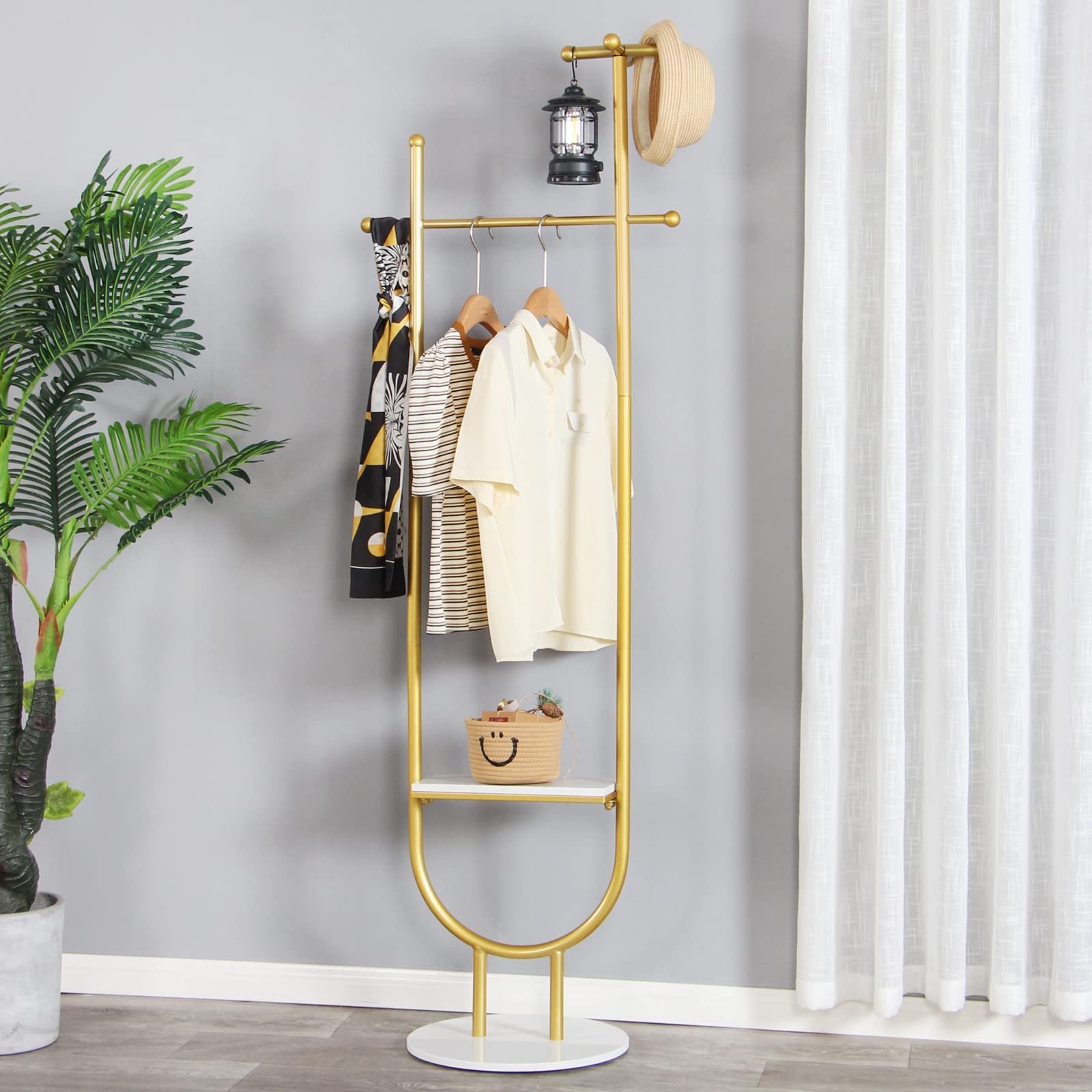 【PERFECT HEIGHT, EASY ACCESS】At 67.2″ tall, this coat stand makes it simple to reach items on the top hook. The open shelf, just 18.6″ from the ground, lets you grab and store your belongings with ease