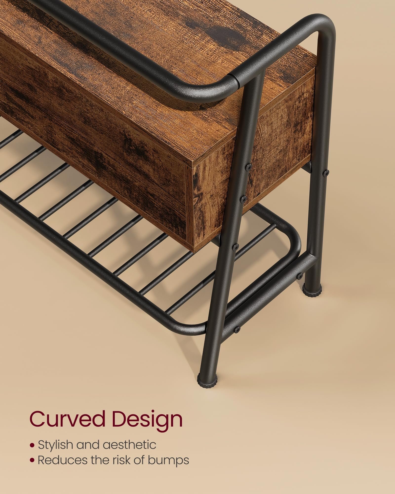 [Sleek, Pretty and Safe Curves] The delicately curved lines of this shoe bench not only offer a refined aesthetic, they also protect you from bumps