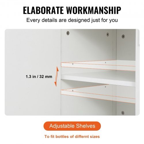 Adjustable Shelves: The bar cabinet board has predrilled holes to achieve 3 heights. Perfect fit the various sizes of bottles. Adjust height at each gear: 1.3 in / 32 mm.