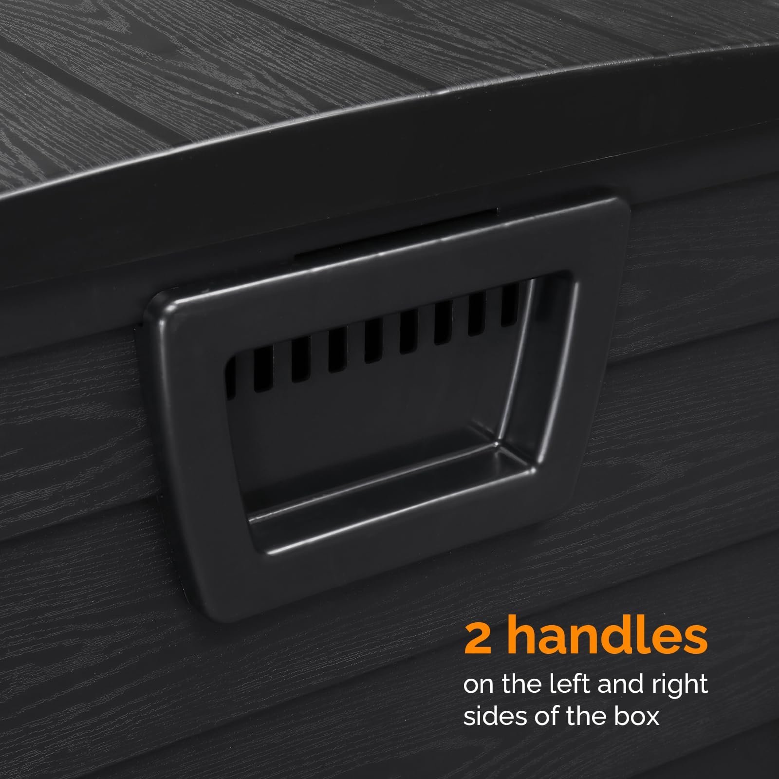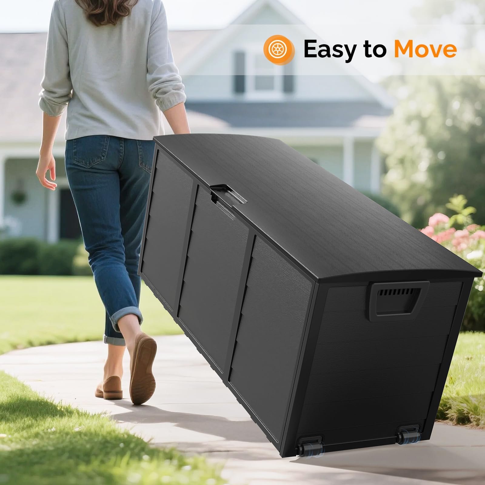 Capacious Storage – Dive into a spacious 75-gallon capacity that effortlessly accommodates your pool equipments, garden tools, and more. This robust storage box with a lid ensures your outdoor essentials are protected and neatly organized