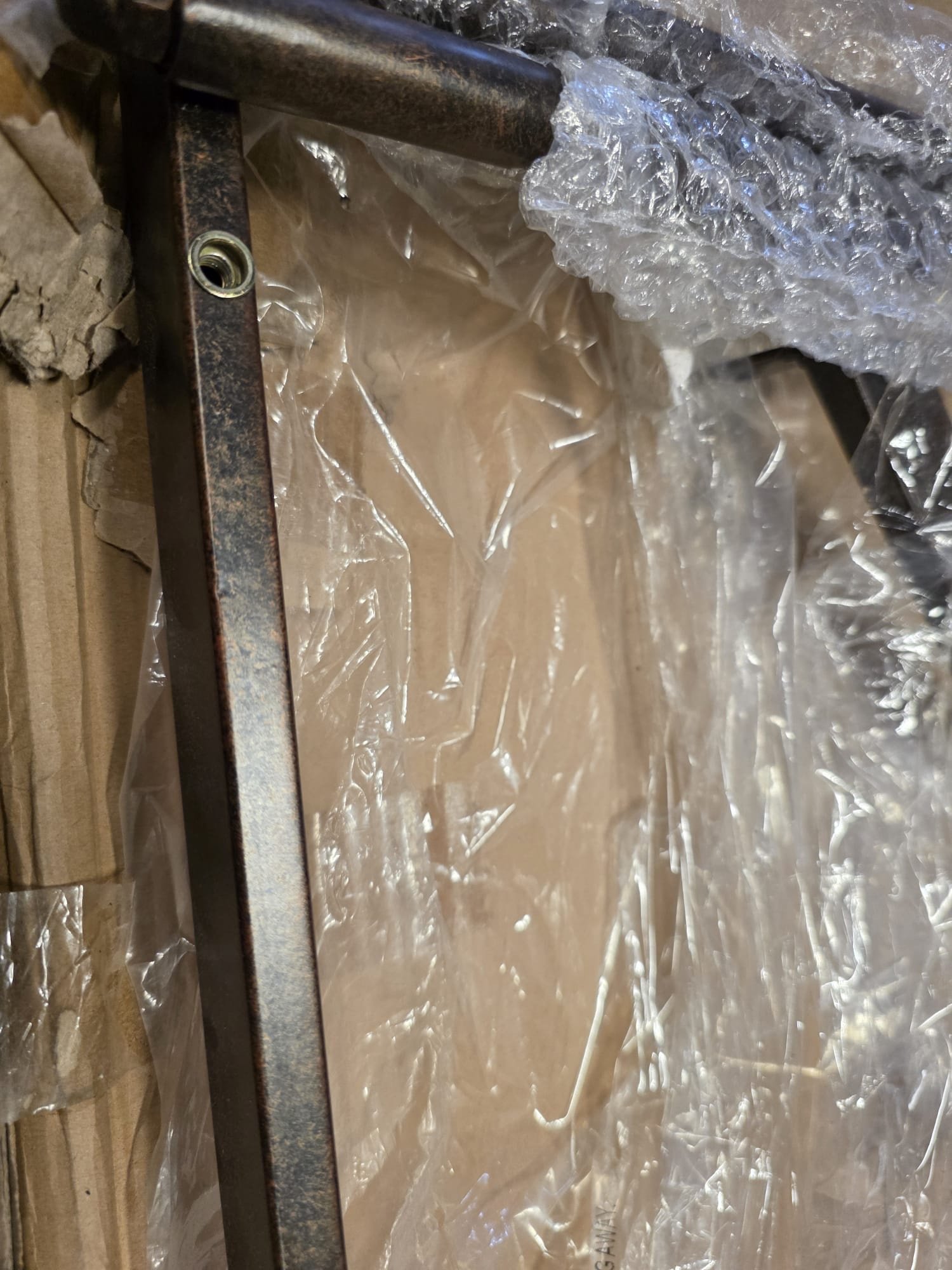 Durable metal frame with rustic brown finish