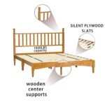viswild Rustic Oak Queen Bed Frame with Headboard – Solid