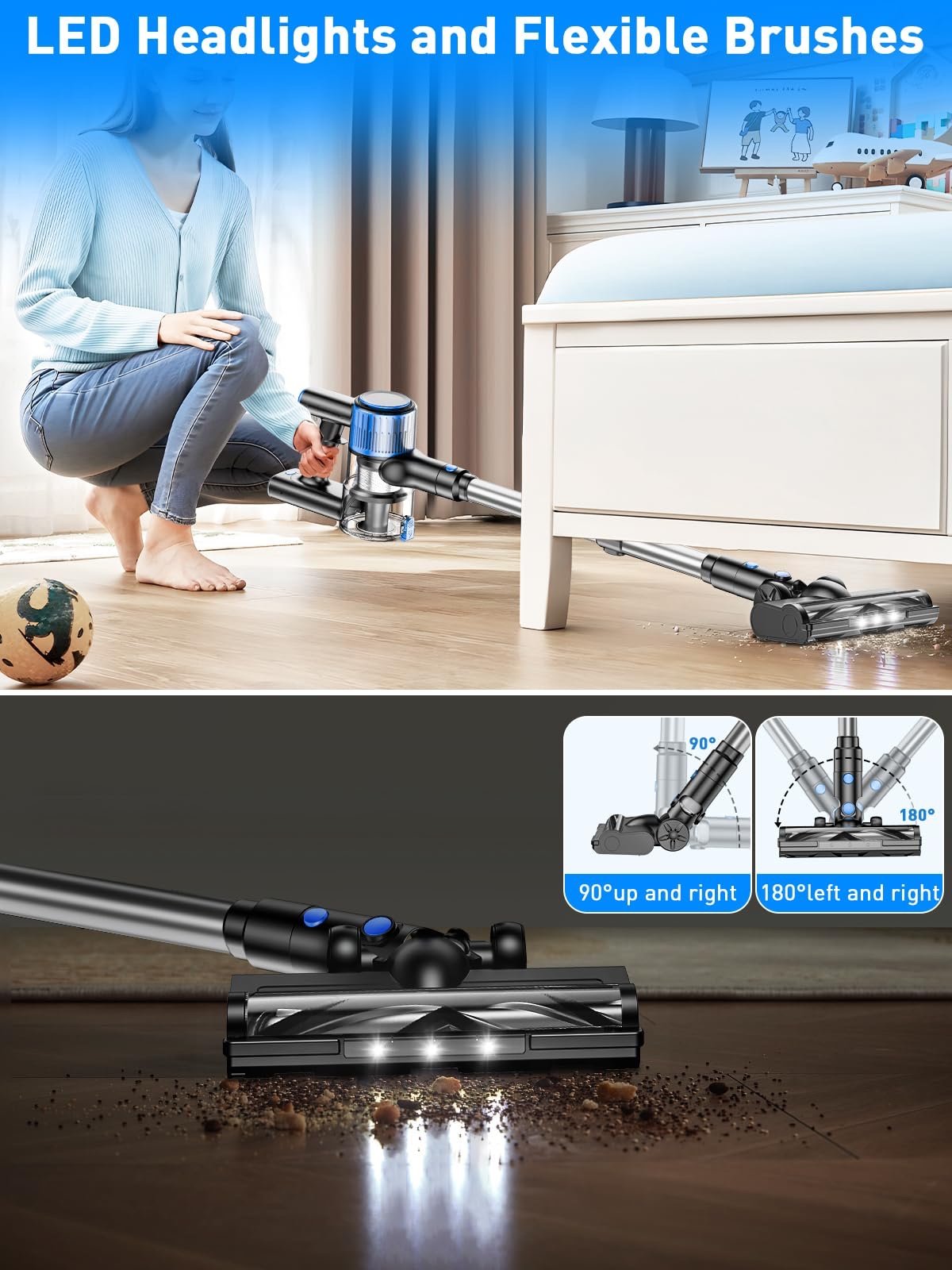 LED Display & Friendly Design: With this lightweight cordless vacuum in hand, you can keep every surface in your home fresh and spotless. It features an easy-to-read LED screen, allowing you to monitor the status of the stick vacuum cleaner at any time. The intuitive physical button and suction adjustments prevent accidental changes, making your cleaning routine simpler and more efficient.