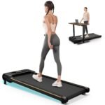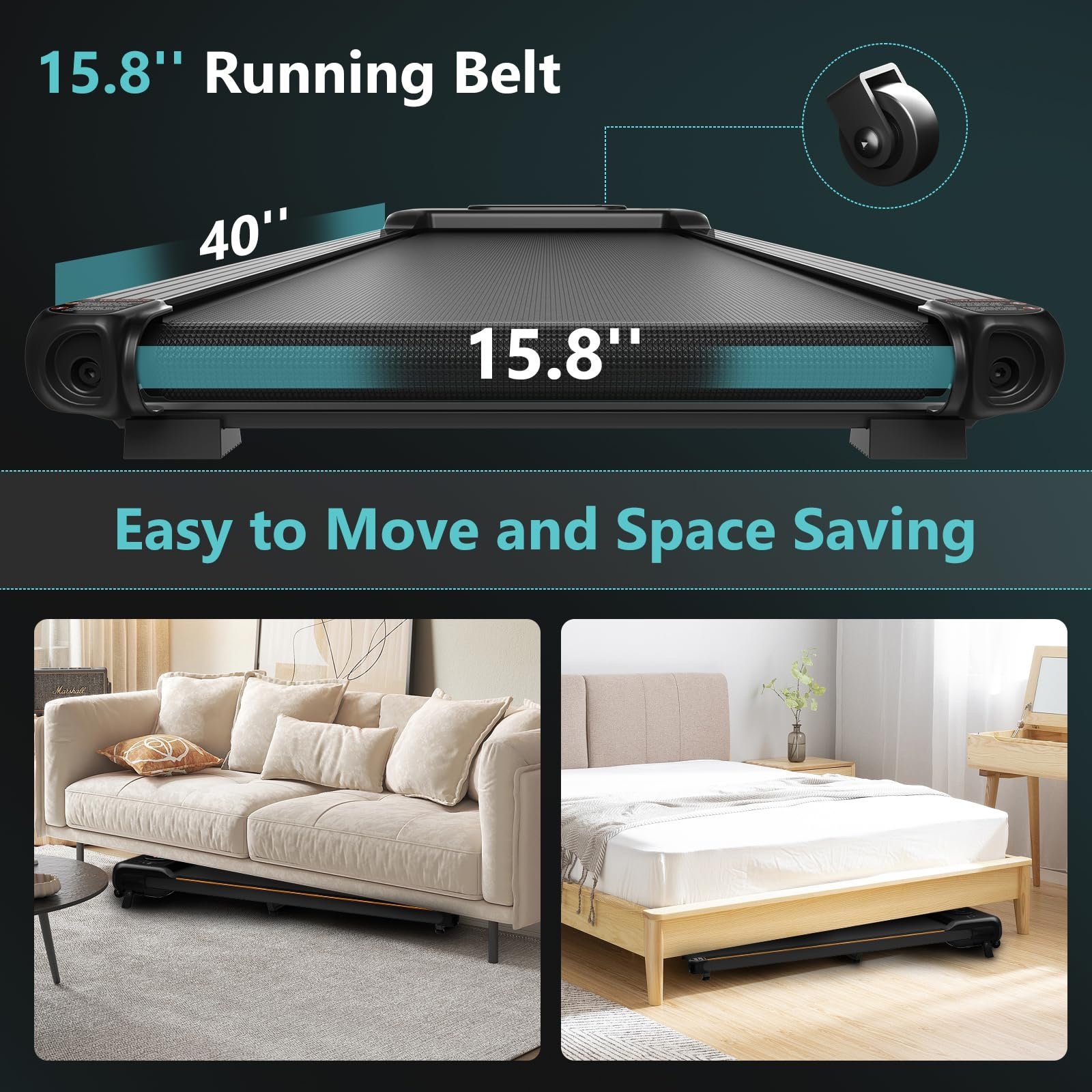 Easy to Move and Store – Thickness of our compact treadmill is only 5.1”, which is easy to be stored under the sofa, desk or bed, making it a great space saver. The walking pad has two wheels on the front side and the machine weighs only 37lbs, so even girls can easily move it to any position you want.