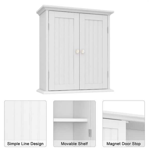 MODERN AND ELEGANT DESIGN: Classic white finish adds elegance to your decor, complemented by sleek lines for a clean, decent appearance. This white wall cabinet will make updating your bathroom a breeze.