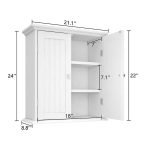 VERSATILE STORAGE SPACE: 24’’H x 21.1’’W x 8.8”D wall mount bathroom cabinet with 2 adjustable shelves, offering customizable storage behind 2 doors.