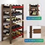 ? LARGE CAPACITY BUT SPACE SAVING: 4 bottles on each shelf, this nice 5-tier wood wine rack can easily stock 20 bottles of wines in total. Boasting a narrow vertical design, it is a wine rack for space efficient storage in your living room, kitchen, dining room, pantry or wine cellar etc.