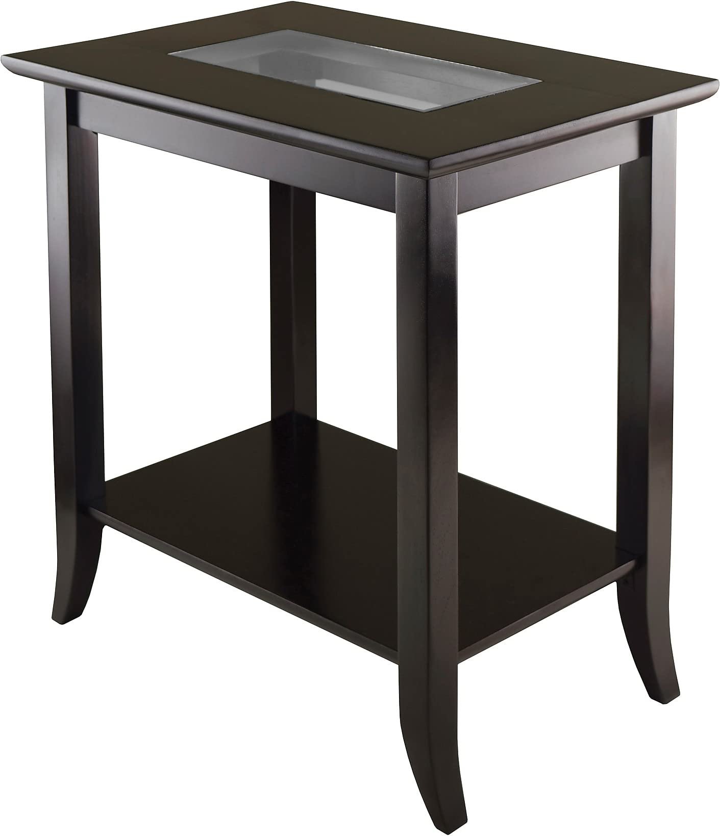 Winsome Wood Genoa Rectangular End Table with Glass Top and Shelf