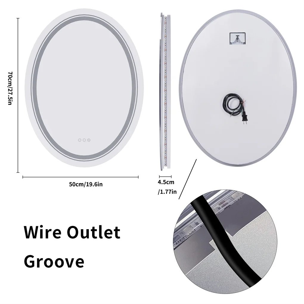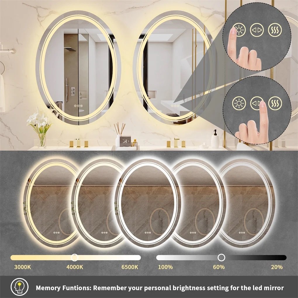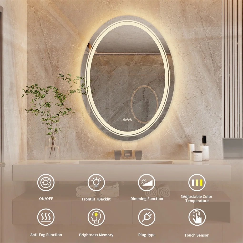 - Dual Lights Bring Super Bright Experience – LUVODI oval LED mirror uses two led strips, the front light and backlit can double the illumination, The strips use 2835 lamp beads, 120LED/m, the lumen reaches 4140-4968lm, CRI≥90, and service life up to 50,000 hours, Long touch the left button to stepless dimming, can fully meet your lighting needs no matter day or night, 5MM copper-free silver-plated mirror with high fidelity of 95-97%, distortion-free HD imaging, perfect for makeup or shaving