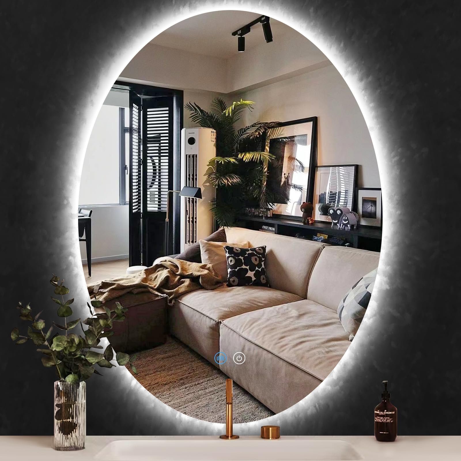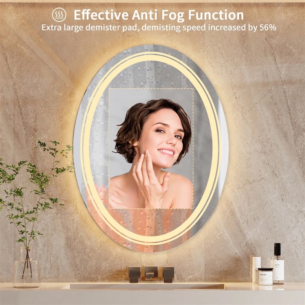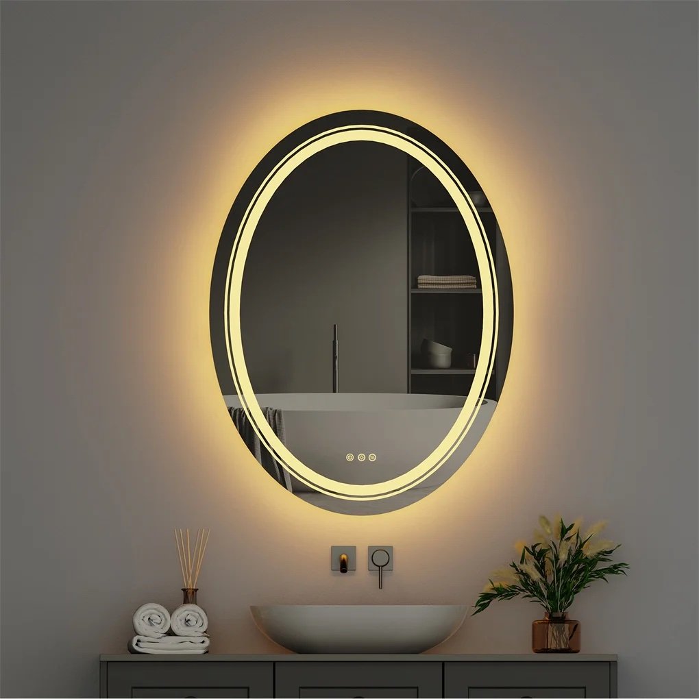 - Dual Lights Bring Super Bright Experience – LUVODI oval LED mirror uses two led strips, the front light and backlit can double the illumination, The strips use 2835 lamp beads, 120LED/m, the lumen reaches 4140-4968lm, CRI≥90, and service life up to 50,000 hours, Long touch the left button to stepless dimming, can fully meet your lighting needs no matter day or night, 5MM copper-free silver-plated mirror with high fidelity of 95-97%, distortion-free HD imaging, perfect for makeup or shaving