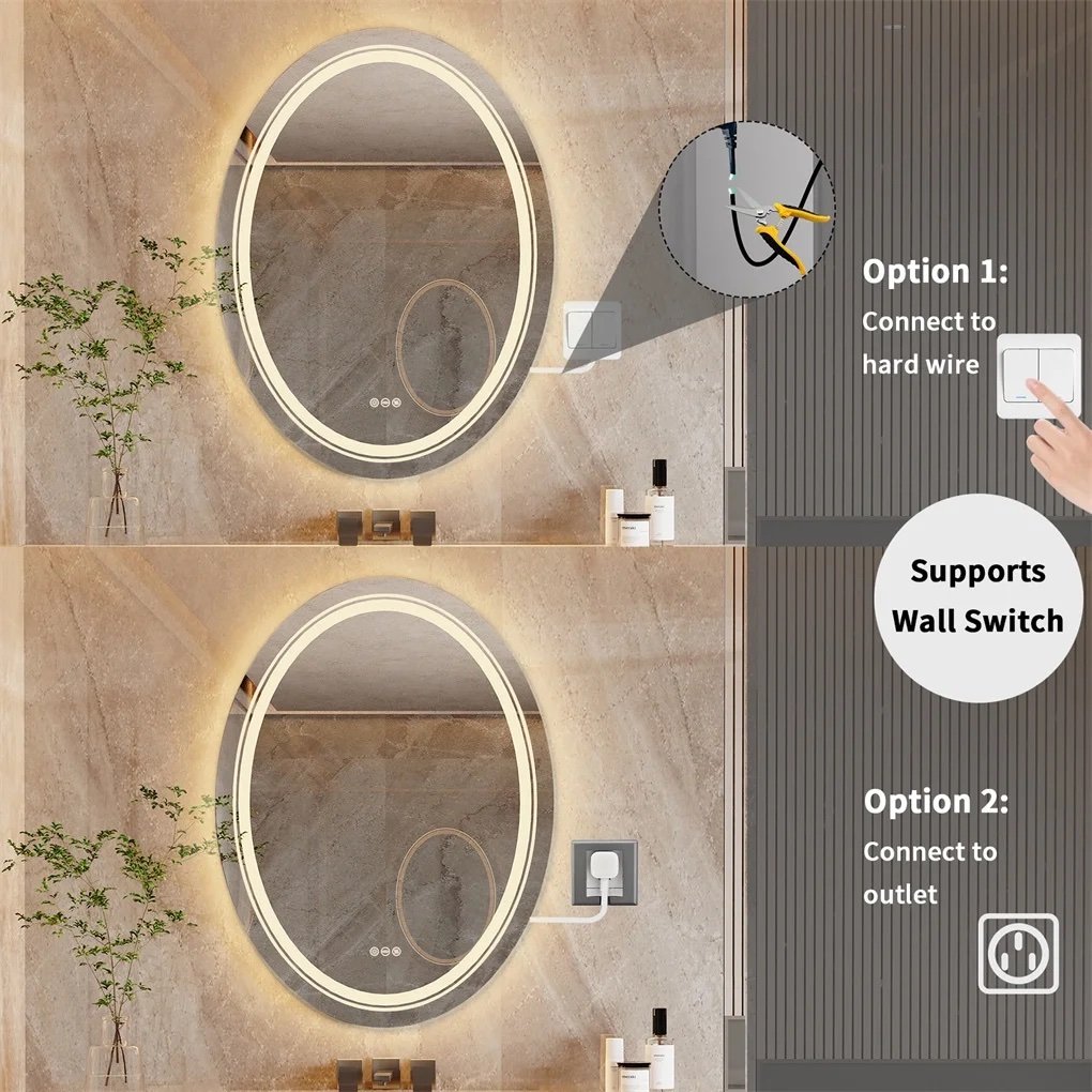 Wisfor bathroom mirror features dual lighting source and has a lot of variability. Allow you easily adjust color temperature and brightness with touch buttons, ant-fog feature works greatly when shower. It was easy to mount and wired.