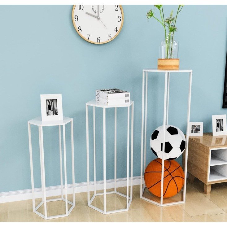 Wokceer Hexagon Pedestal Cylinder Stands are a set of three nesting stands designed for indoor and outdoor use. Featuring a hexagonal pattern and a sleek white finish, these aluminum stands are perfect for adding a touch of elegance to any party setting. With a height of 35.43 inches, these pedestal stands provide a stylish way to display plants or decorative items at your next event. Ideal for adding a modern and sophisticated touch to your home or garden decor, these stands are a versatile and eye-catching addition to any space.