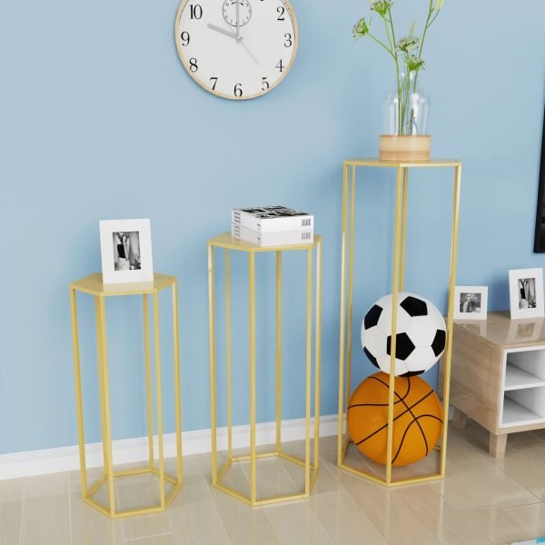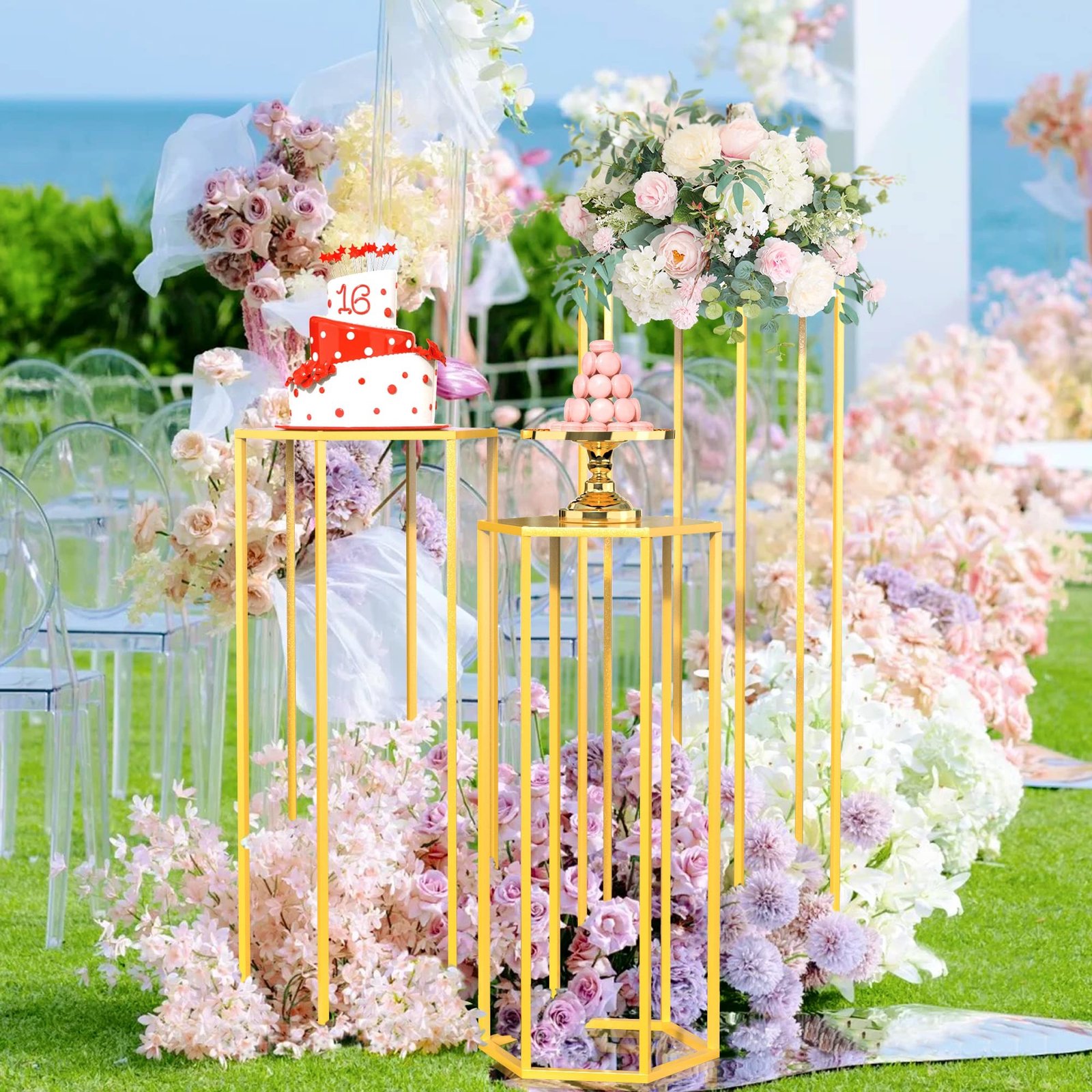 【Hexagon Pedestal Stand】Hexagonal cylinder pedestal stands for parties with antirust-resistant coating which is waterproof and rustproof, smooth ending without sharp edges, safe and durable for long time use.