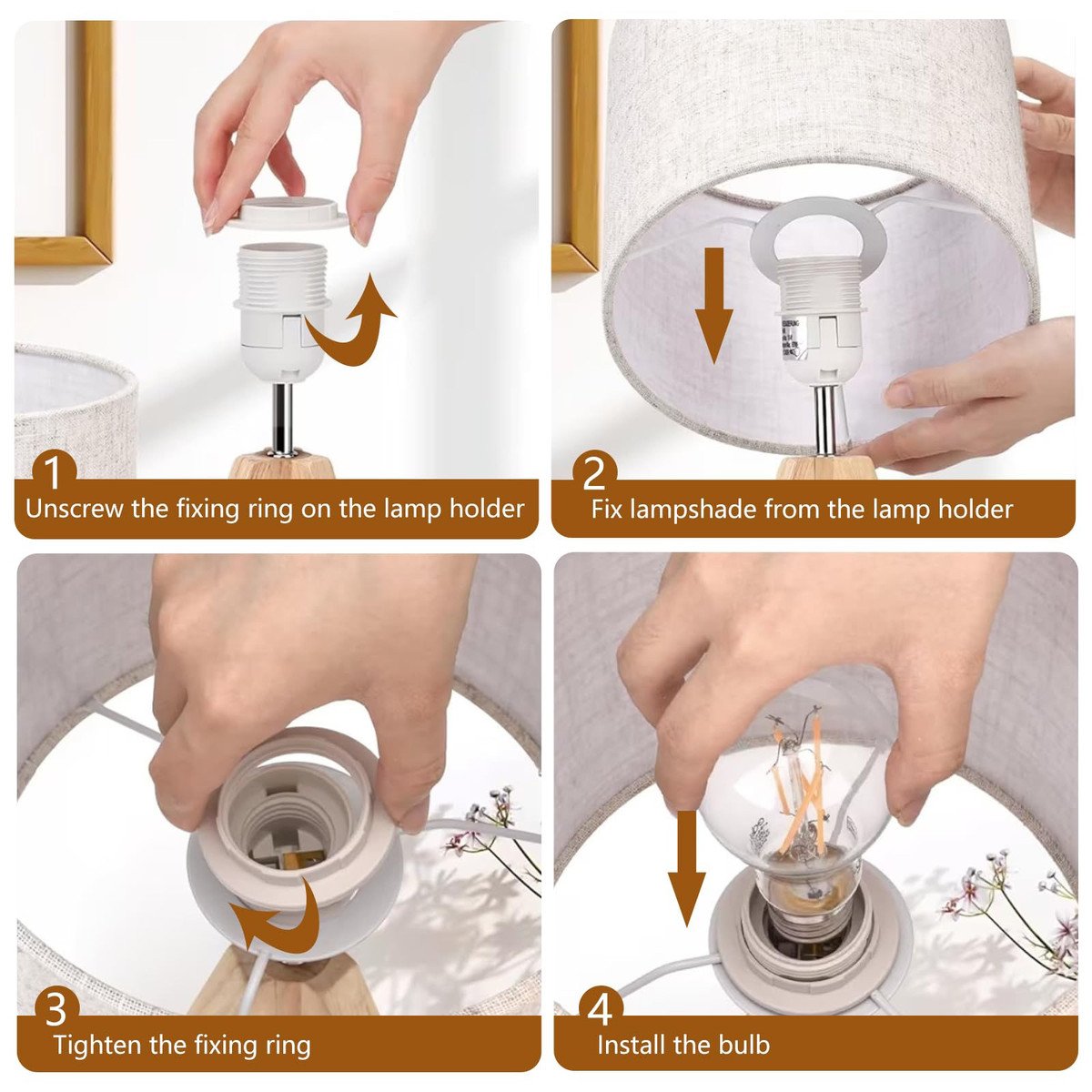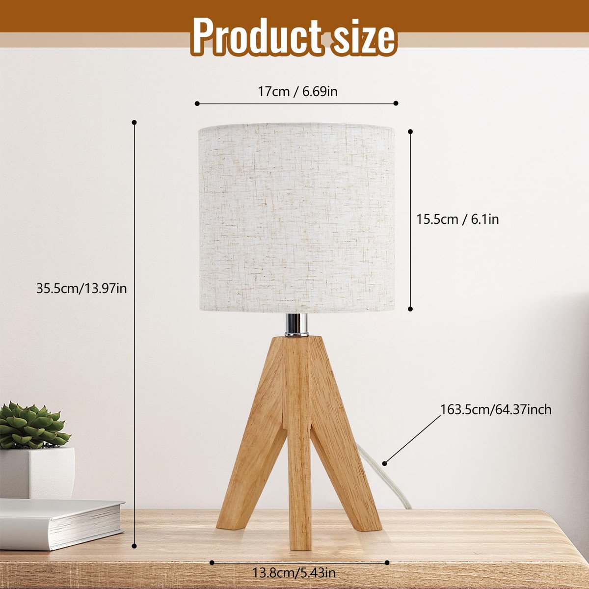 Space Saving&Easy to Assemble – Our table lamp designed with wooden tripod,which has a modern and simple look,adding an elegant and warm atmosphere to your home.The dimensions of the lamps for bedrooms are 13.97inch(H) x 6.69inch (W),and the base of the bedside lamp is 5.43 inch,which fit any table without occupying too much space.The lamps living room is easy to install,you can assemble the table lamps in minutes.The power cord length of small lamp is 64 inches,which provides more flexibility.