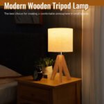Wooden Tripod Bedside Lamp with Linen Fabric Shade – Our table lamp has a natural wooden tripod,which the triangular base is more robust and not easy to tip over,adding much safety.The lamps for bedrooms also has a linen fabric lampshade, emits warm and comfortable light without hurting your eyes, free from glare or flicker.This fabric lampshade matches with the natural wooden base,which simple but classic,and elevate the aesthetics of your room.