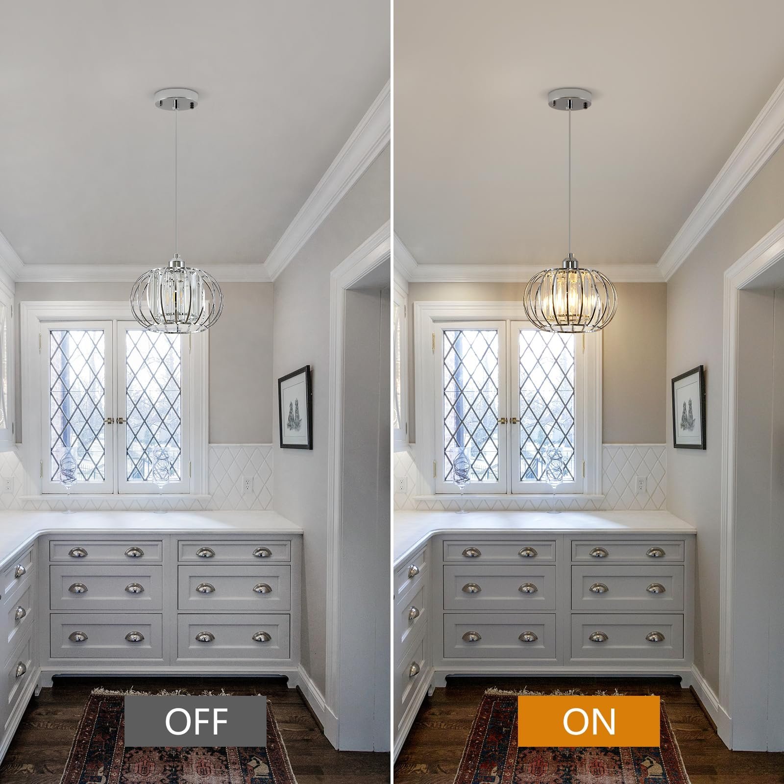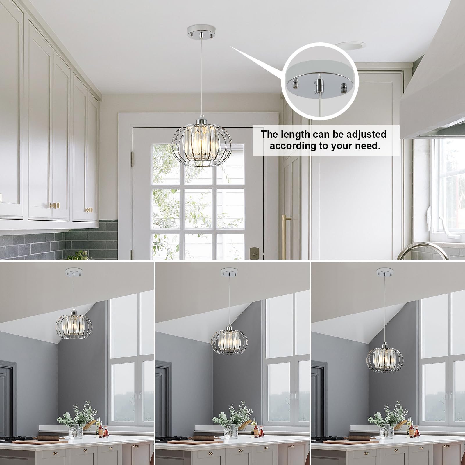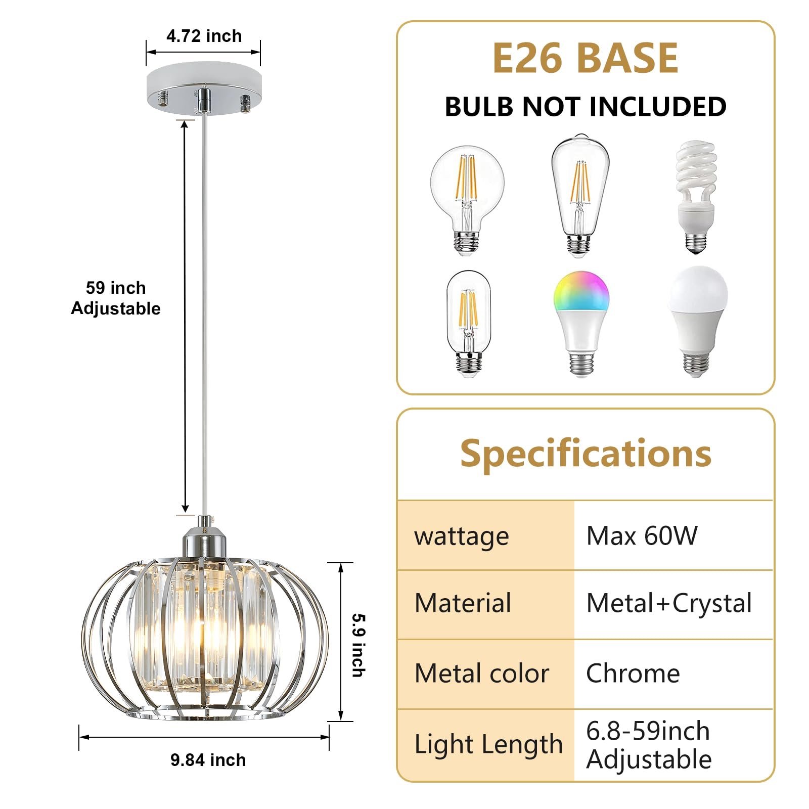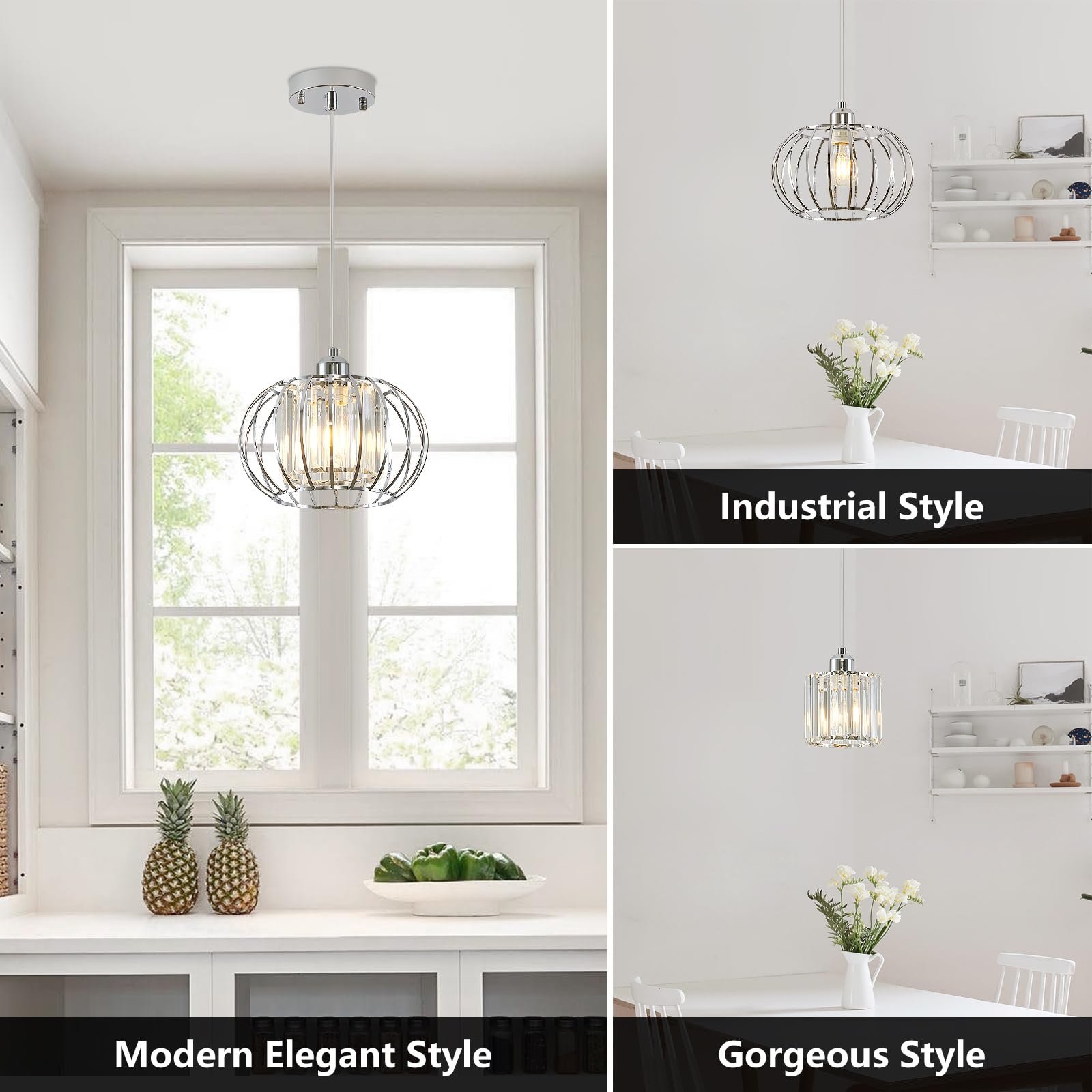 Simple and Modern Style: Designed with a beautiful metal cage with crystal shade, this chrome pendant light adds luxury and elegance to any space. You can change its brightness by using a crystal shade or not. A useful little light for a corner or bedroom.