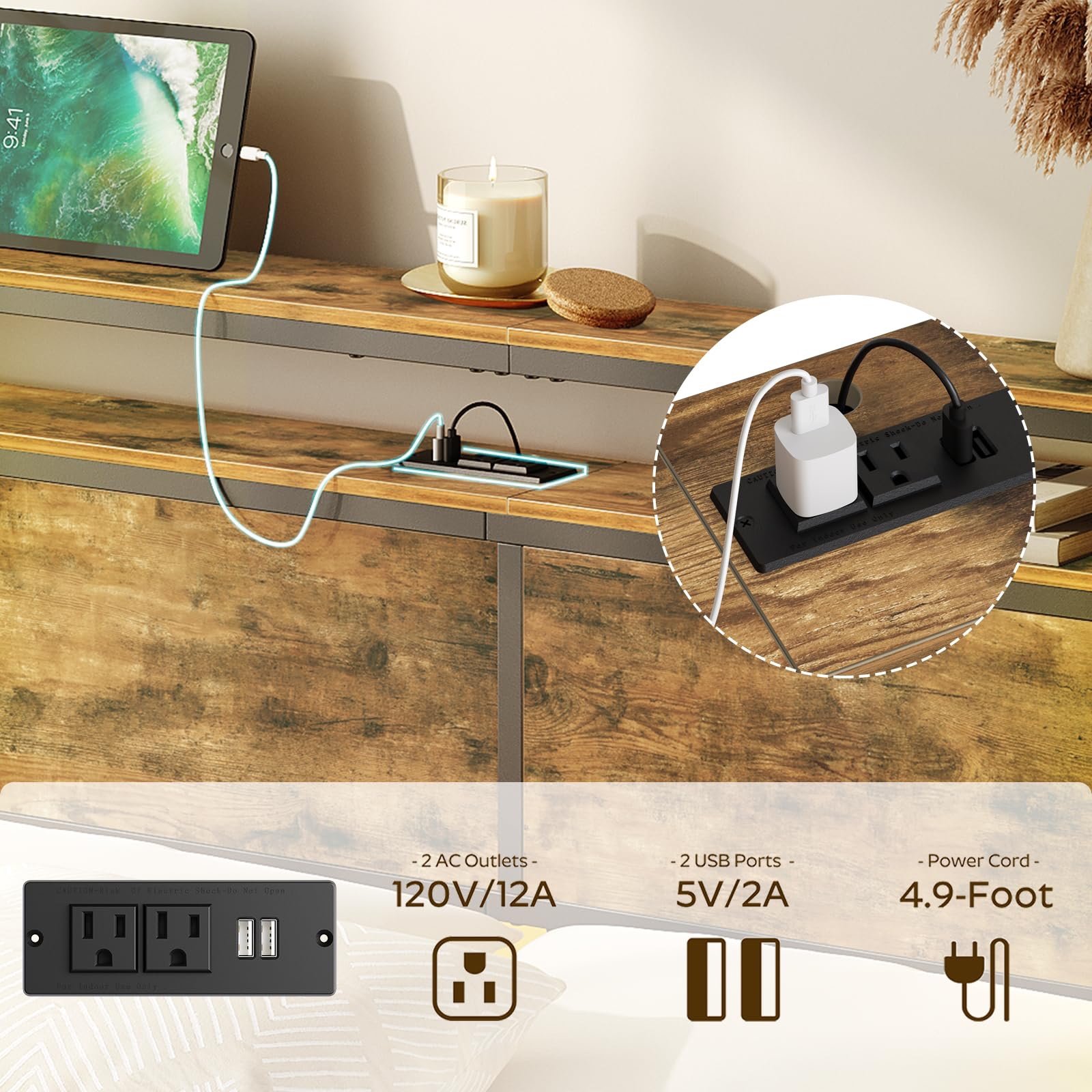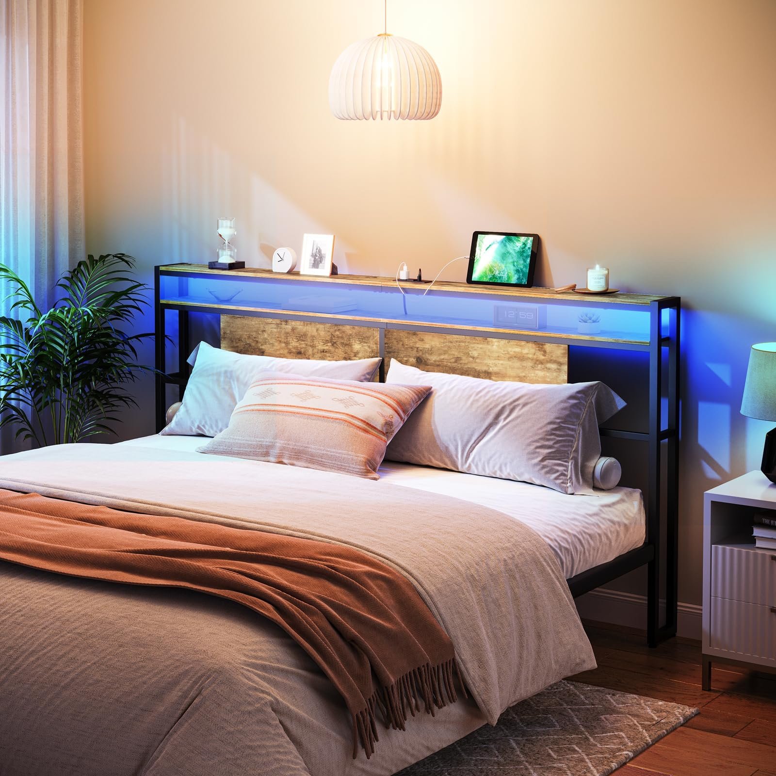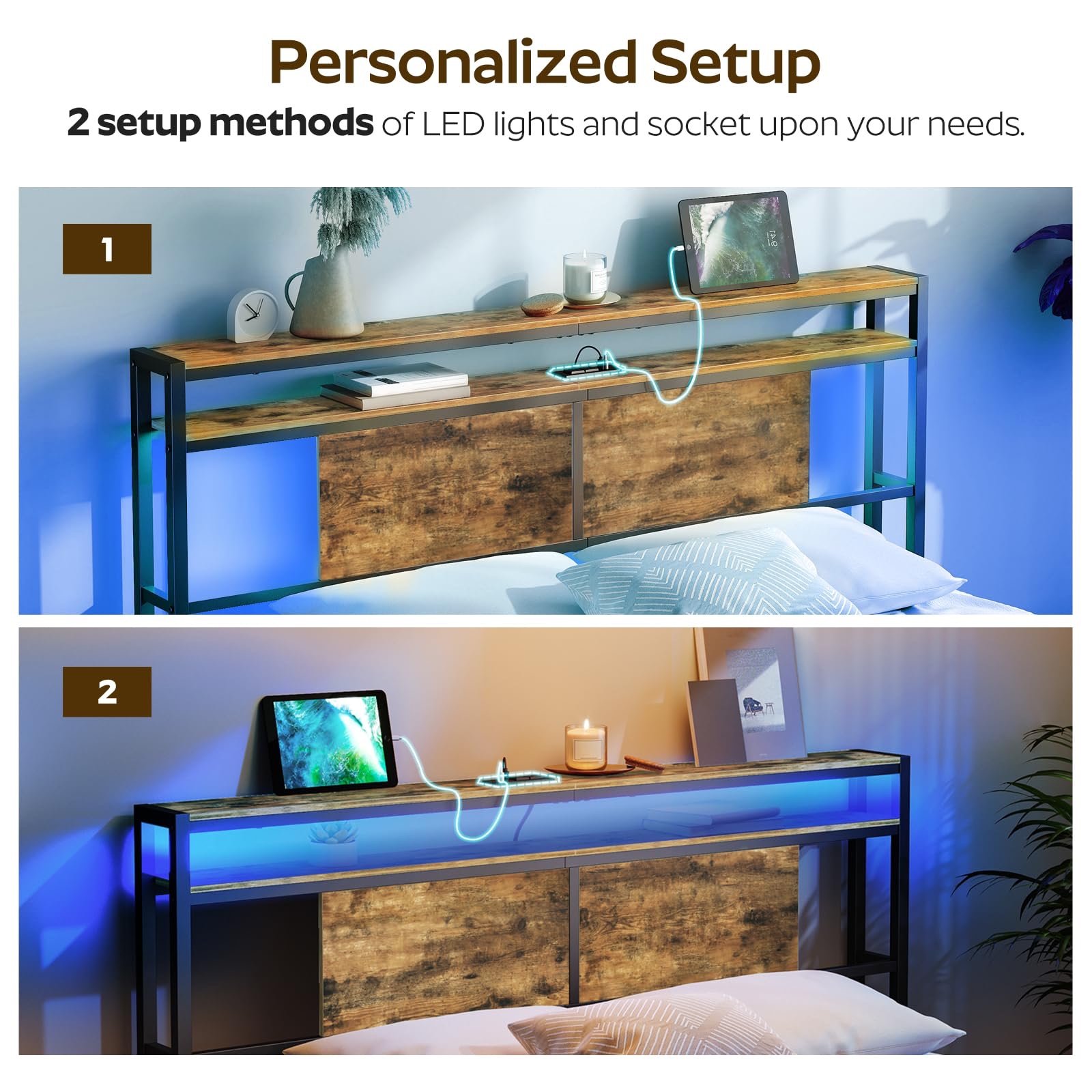 Equipped with Charging Ports: This king headboard with storage, 2 USB ports and 2 outlets to charge your devices in bed without having to find extra sockets, ensuring that your phone or tablet is fully charged while you relax in bed