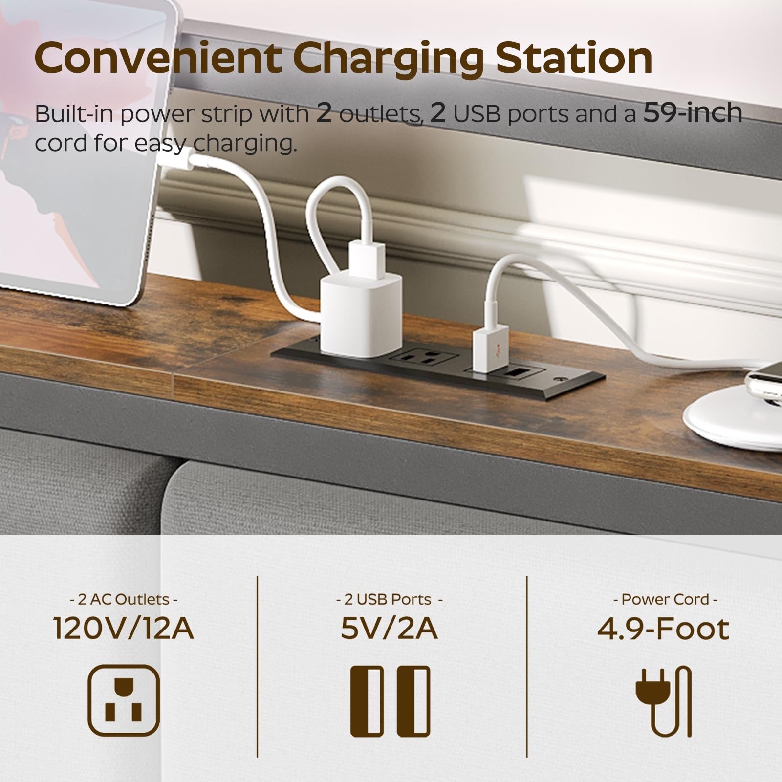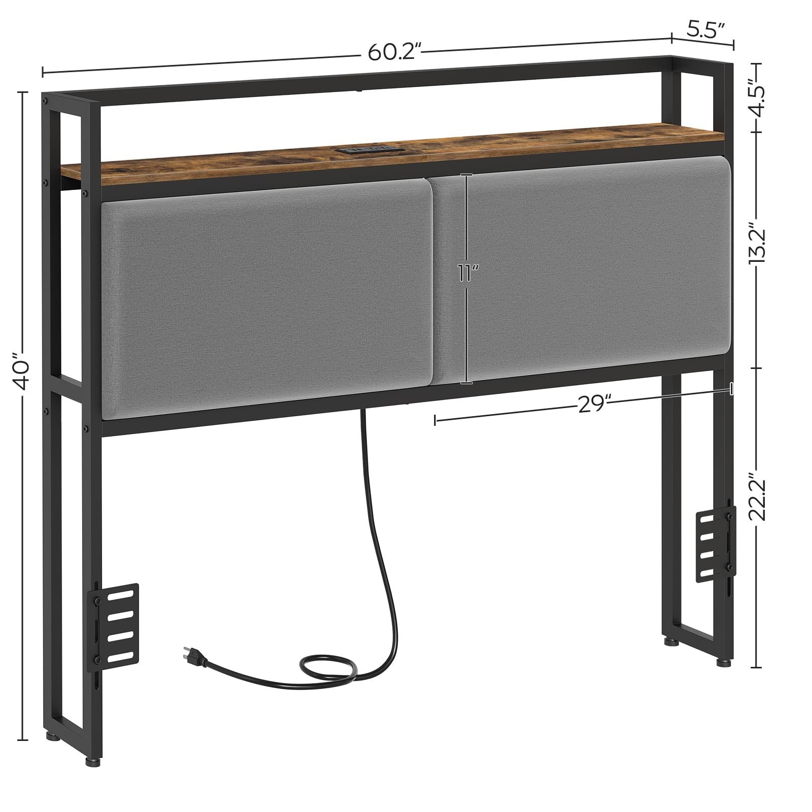 Utility Charging Station: Enjoy easy charging of your electronic devices right at your bedside. This headboard has 2 outlets and 2 USB ports with a 59″ cord, freeing you from tangled wires with a perfect blend of convenience and functionality