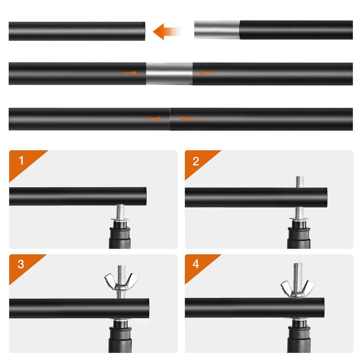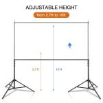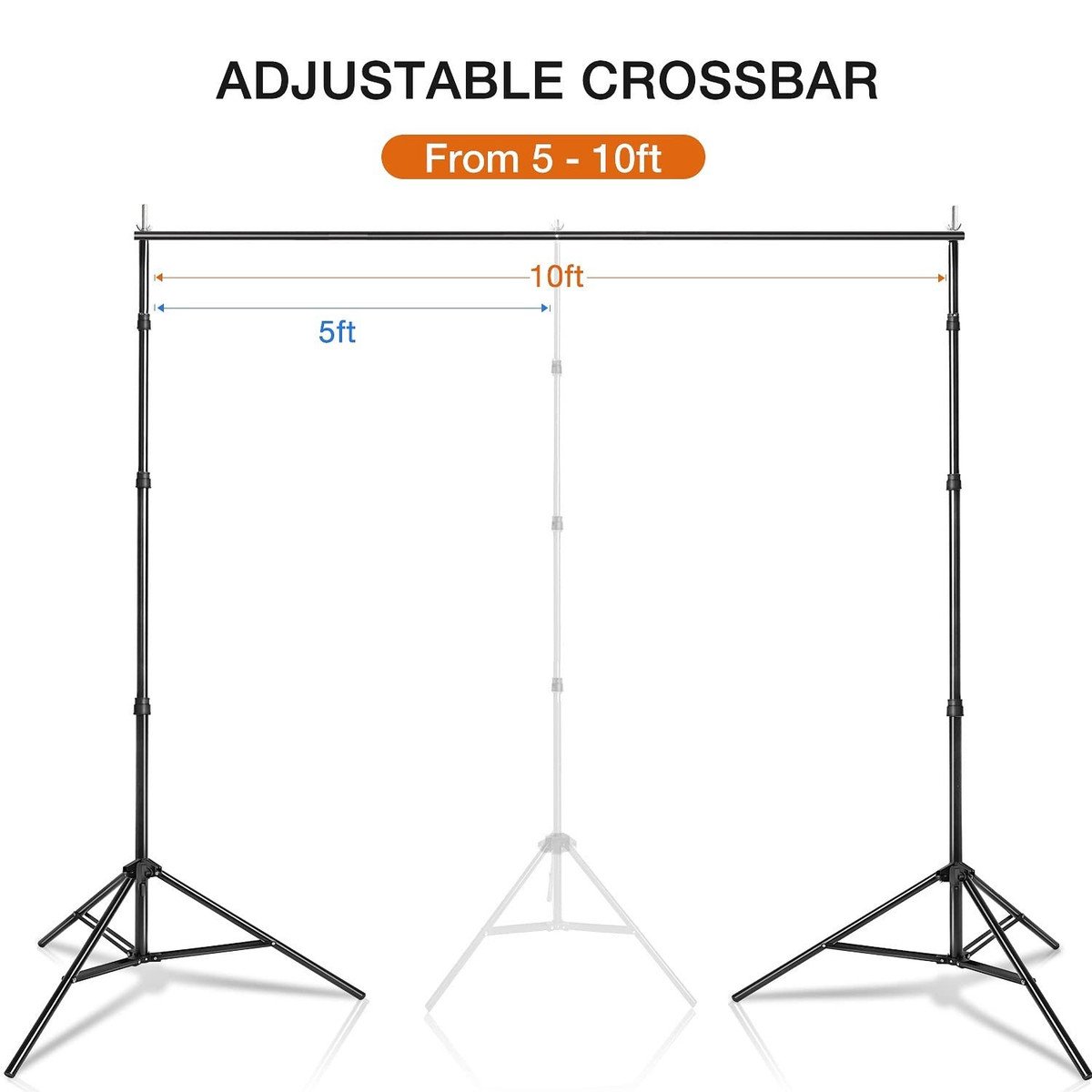 4 x Crossbar – Telescopic top crossbar with adjustable width: min width 5ft-max 10ft. The crossbar is easy to assemble and disassemble, can support canvas, muslin and paper background, etc
