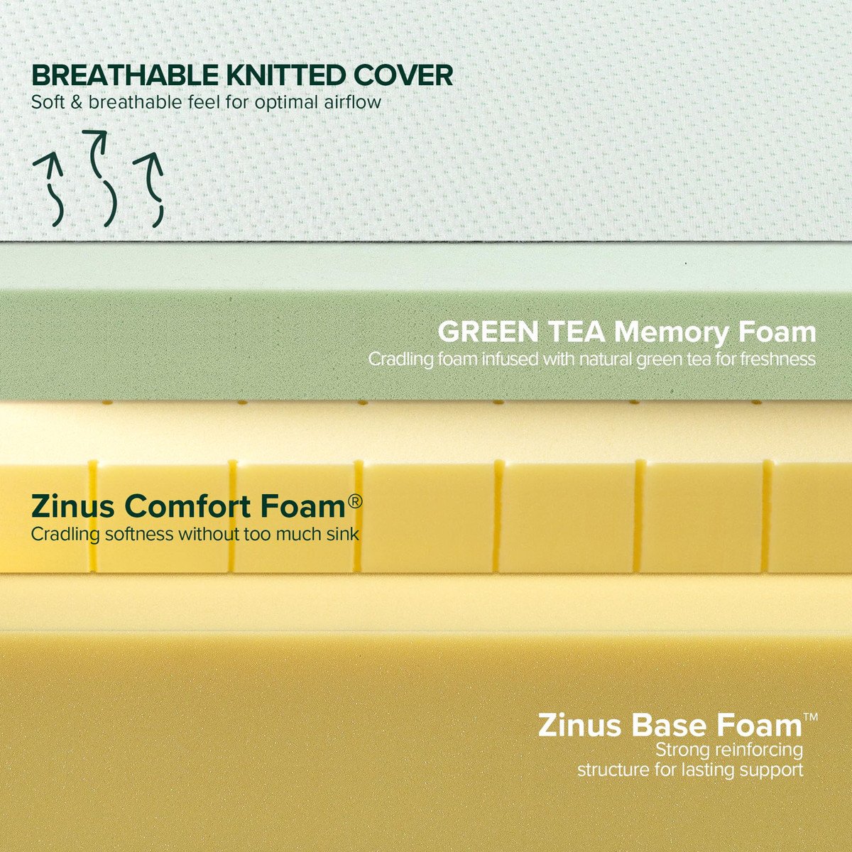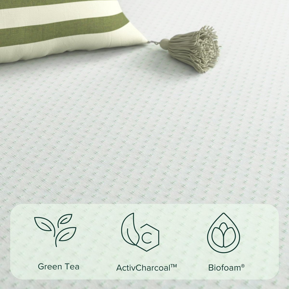 THE RIGHT COMBINATION – Our special recipe for rejuvenating rest? Refreshing green tea and moisture-absorbing ActivCharcoal infused into pressure-relieving memory foam that cradles your shape so you awake free of aches and pains and fresh as a daisy
