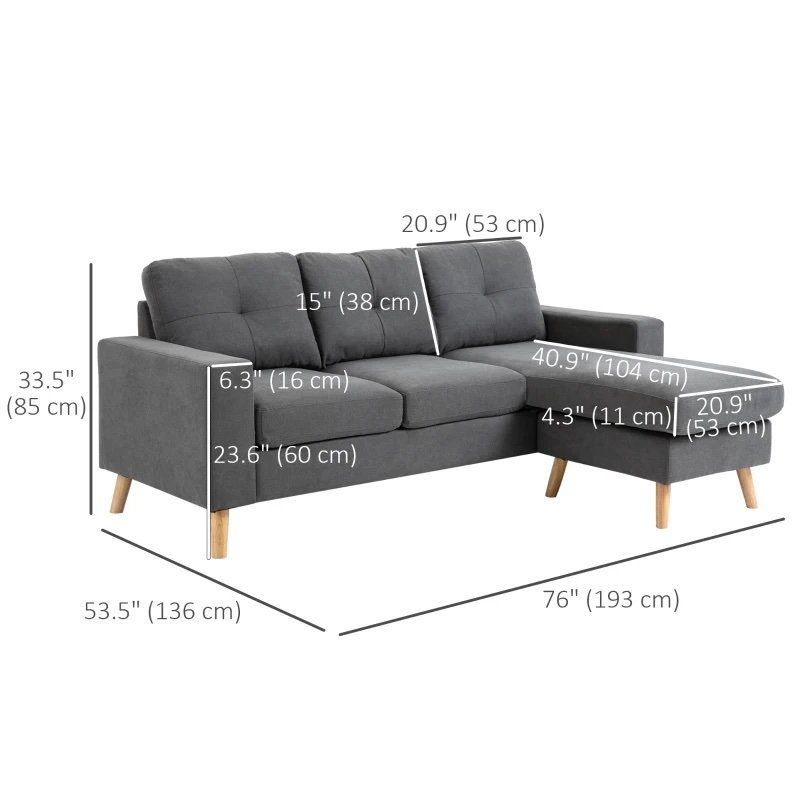 HOMCOM Sectional L Sofa Couch,Reversible Chaise