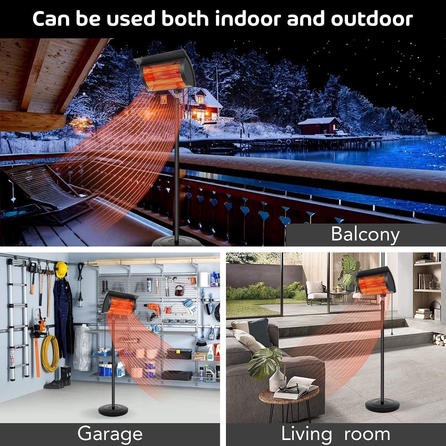New Simple Deluxe Standing Electric Patio Heater, 750W/1500W
