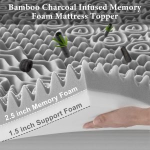 4″ Mattress Topper Full/Double,Memory Foam Topper Bamboo Charcoal Infused