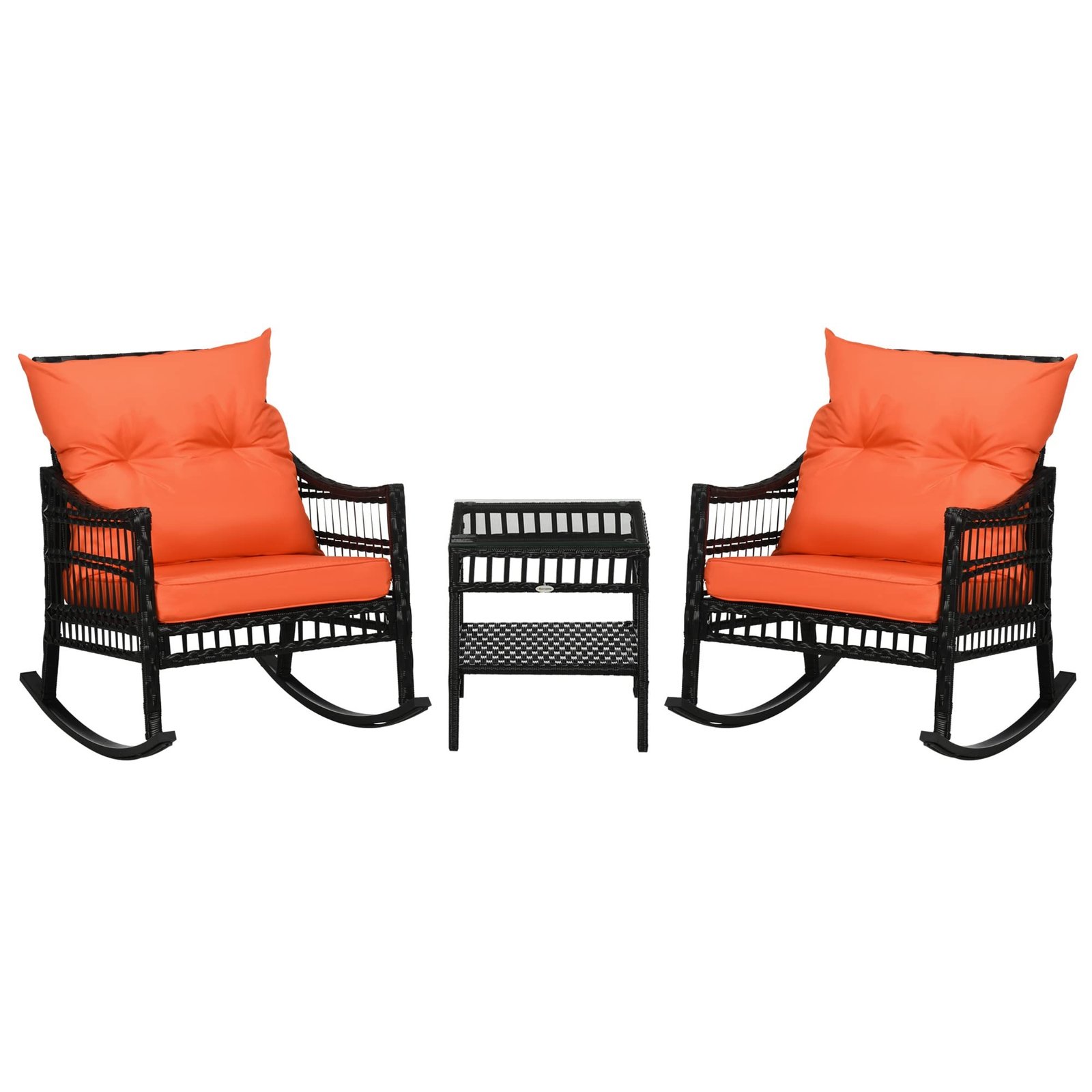 Outsunny 3 Pieces Outdoor PE Rattan Rocking Chair Set