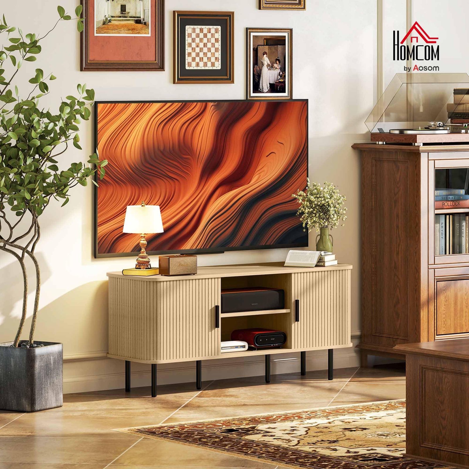 HOMCOM TV Table Stand with Storage Shelves