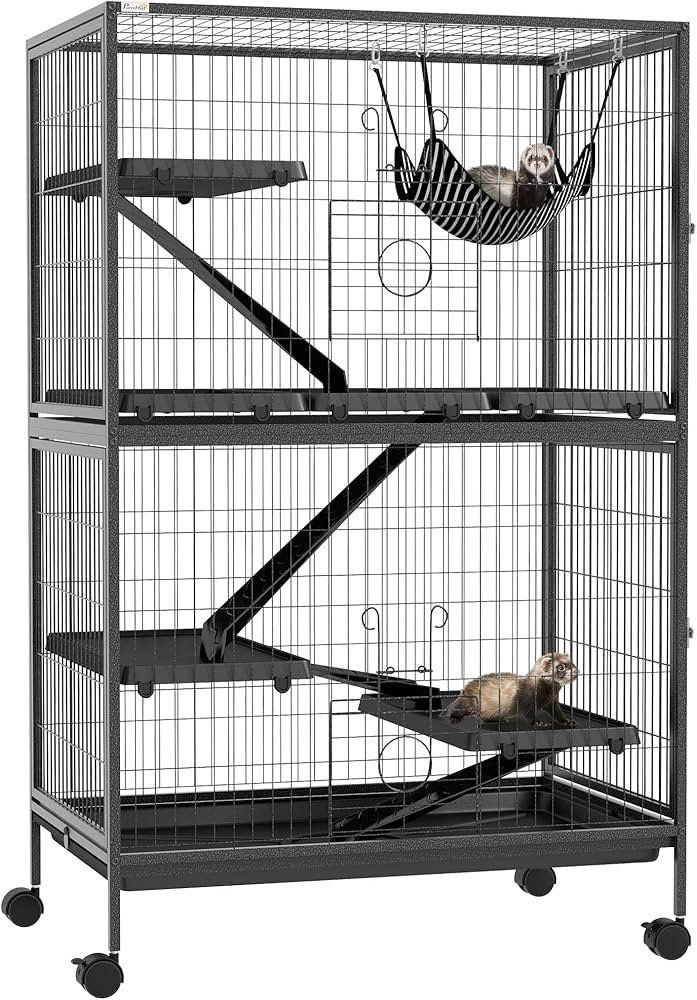 PawHut 2-Tier Ferret Cage Rolling Small Animal Cage w/ Shelf, Black