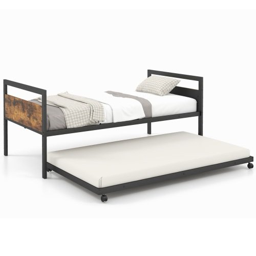 Costway Twin Metal Daybed with Trundle Lockable Wheels